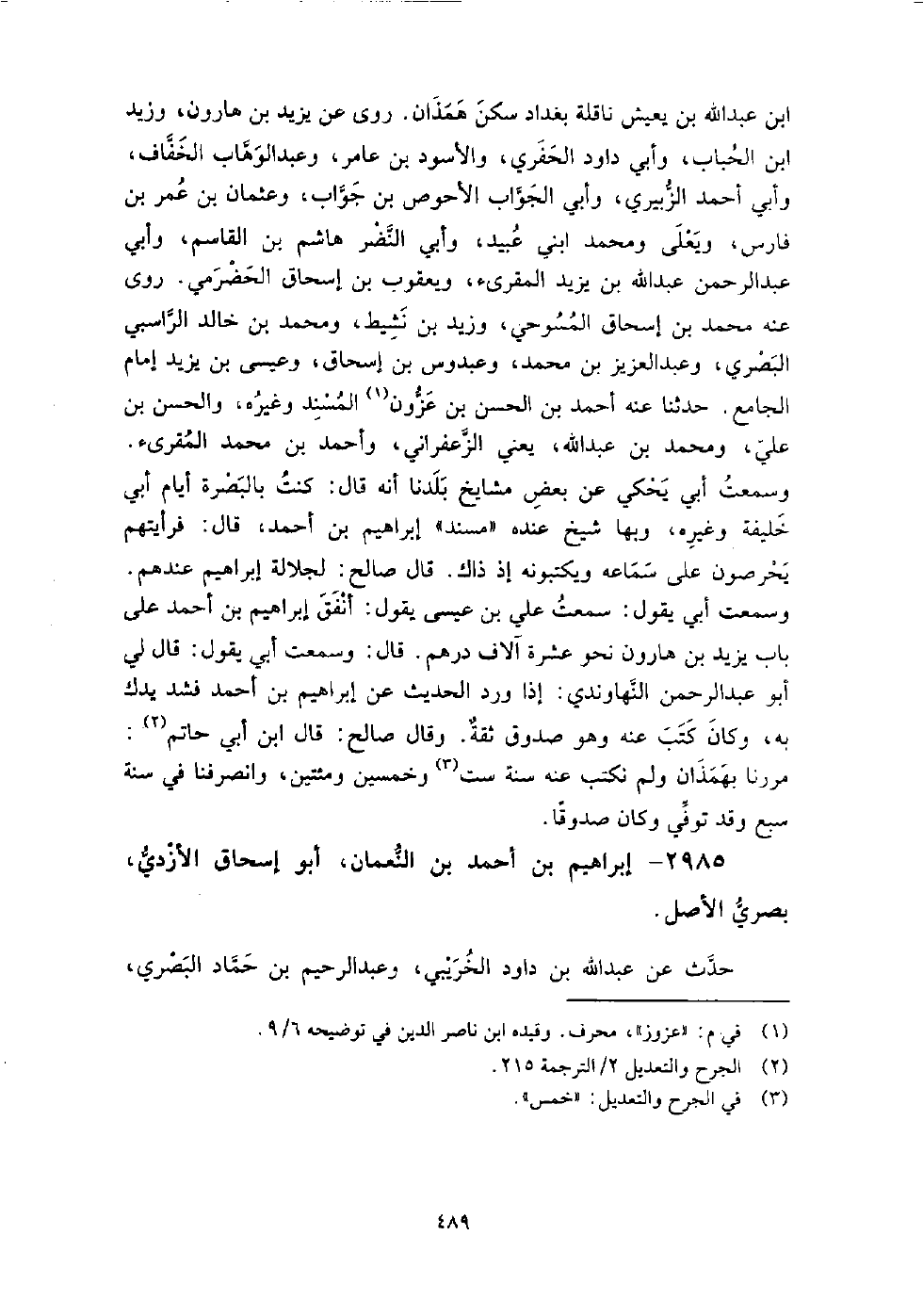 2985 - إِبْرَاهِيم بْن أَحْمَد بْن النعمان أَبُو إِسْحَاق الأزدي بصري الأصل،