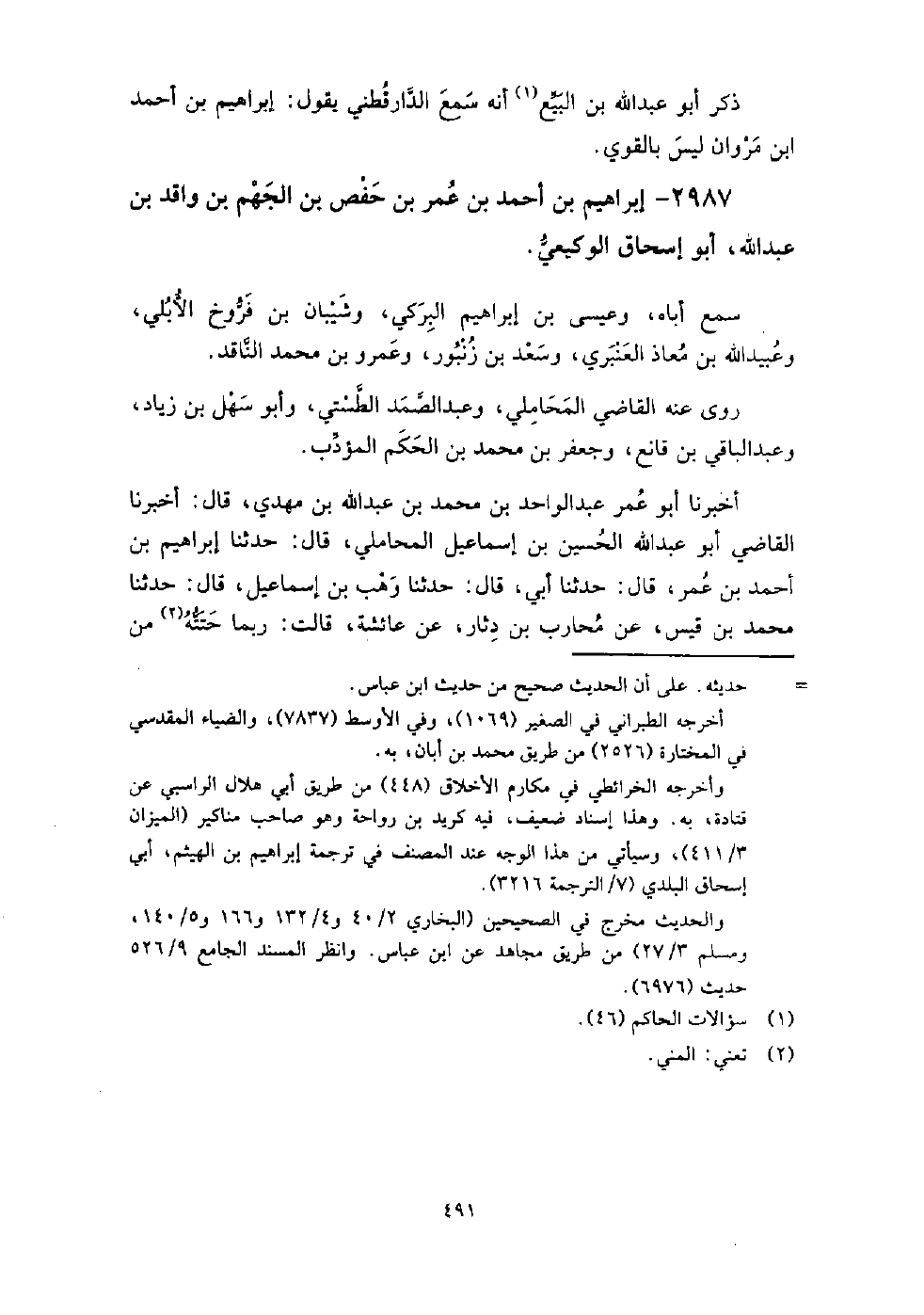 2987 - إِبْرَاهِيم بْن أَحْمَد بْن عُمَر بْن حفص بْن الجهم بْن واقد بْن عَبْد اللَّهِ أَبُو إِسْحَاق الوكيعي سمع أباه، وعِيسَى بْن إِبْرَاهِيم البركى، وشيبان بْن فروخ الأبلي، وعبيد اللَّه بْن معاذ العنبري، وسعد بْن زنبور، وعمرو بْن مُحَمَّد الناقد.