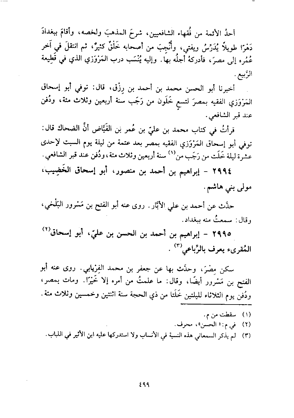 2994 - إِبْرَاهِيم بْن أَحْمَد بْن منصور أَبُو إِسْحَاق الخضيب مولى بني هاشم حدث عَن أَحْمَد بْن عَلِيّ الأبار، روى عنه: أَبُو الفتح بْن مسرور البلخي، وَقَالَ: سمعت منه ببغداد.