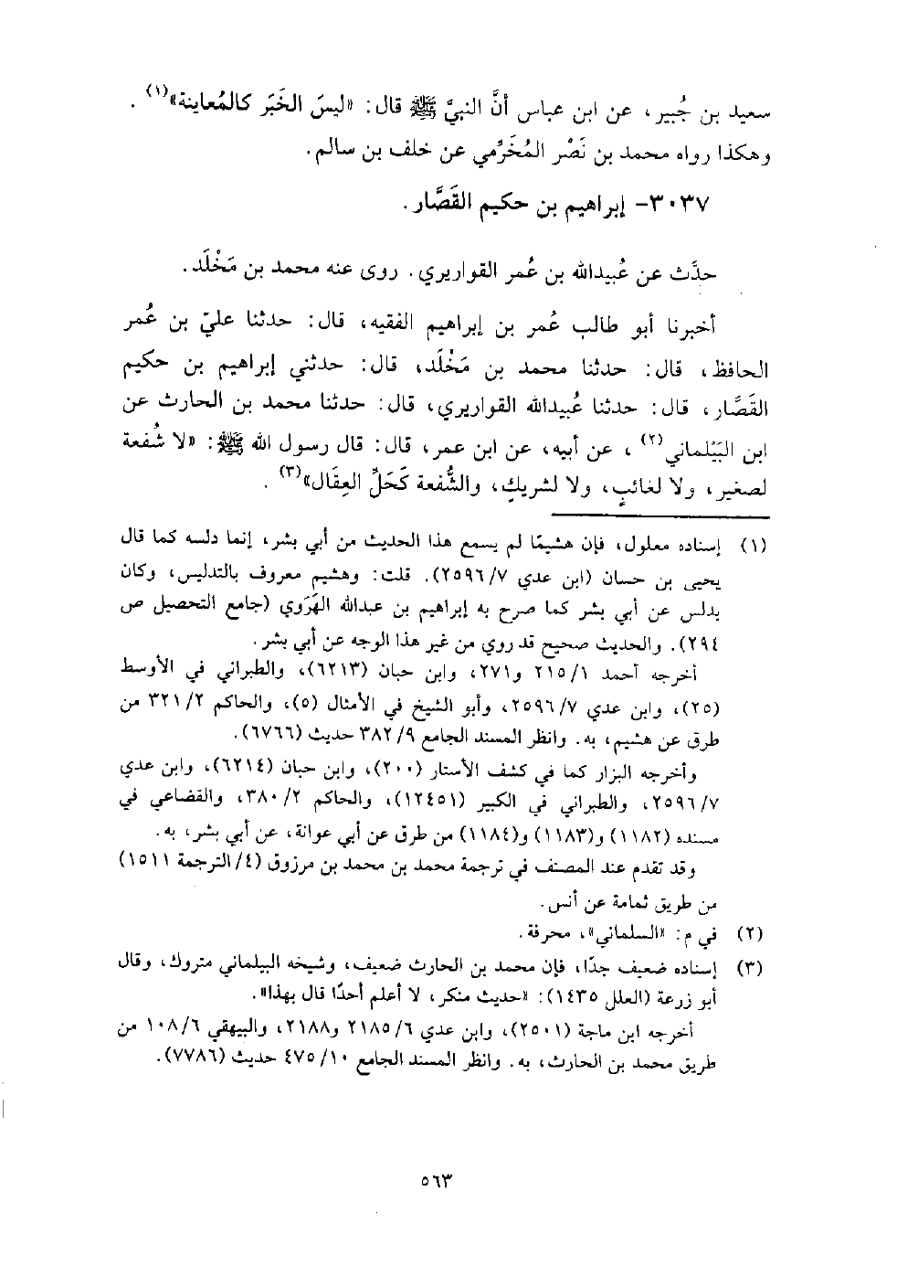 3037 - إِبْرَاهِيم بْن حكيم القصار حدث عَن عبيد اللَّه بْن عُمَر القواريري، روى عنه: مُحَمَّد بْن مخلد.