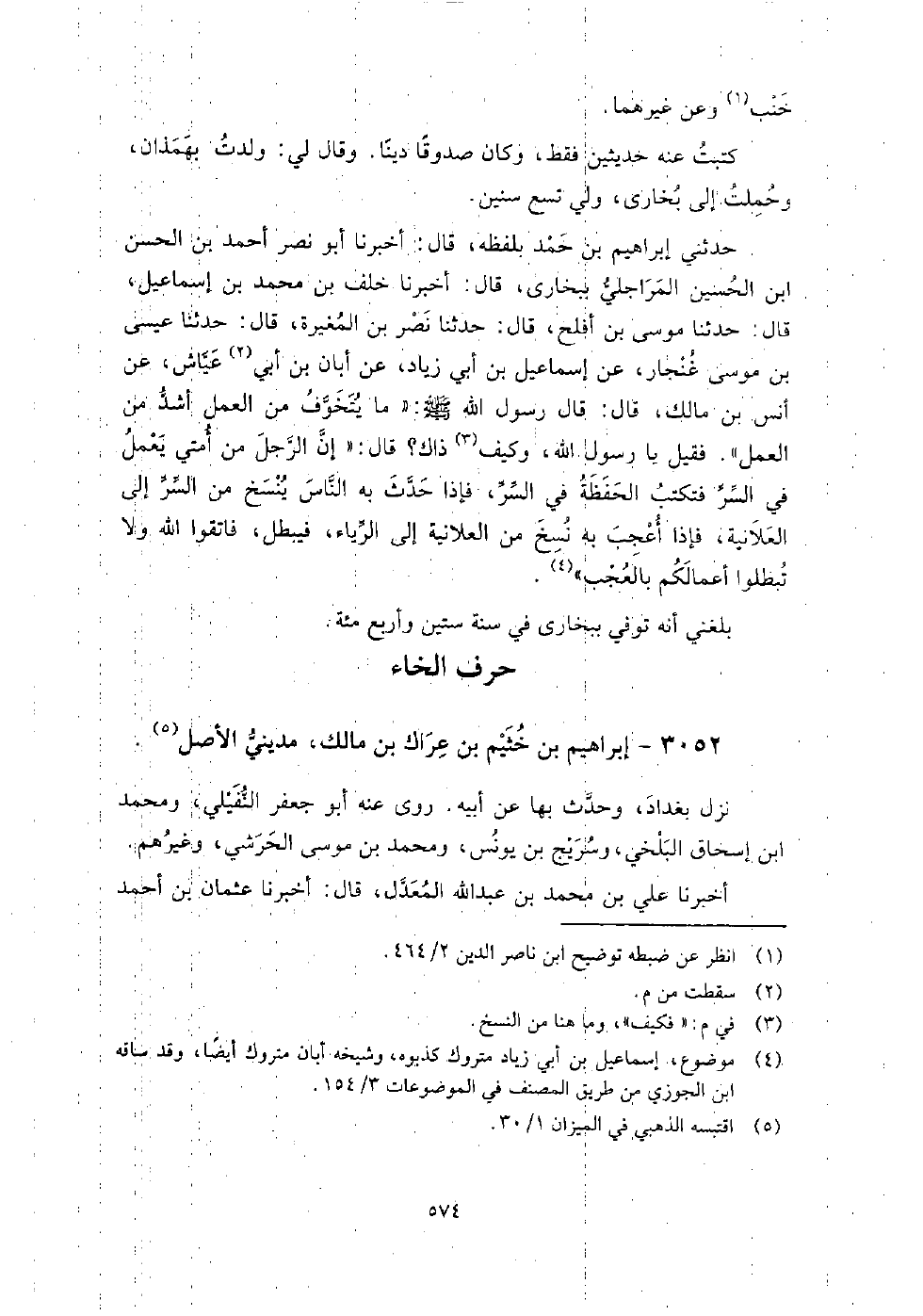 3052 - إِبْرَاهِيم بْن خثيم بْن عراك بْن مالك مديني الأصل، نزل بغداد، وحدث بِهَا عَن أَبِيهِ، روى عنه: أَبُو جَعْفَر النفِيلي، ومحمد بْن إِسْحَاق البلخي، وسريج بْن يونس، ومحمد بْن مُوسَى الحرشي، وغيرهم.