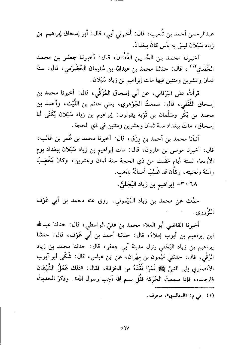 3068 - إِبْرَاهِيم بْن زياد البجلي حدث عَن مُحَمَّد بْن زياد الميموني، روى عنه: مُحَمَّد بْن أَبِي عوف البزوري.
