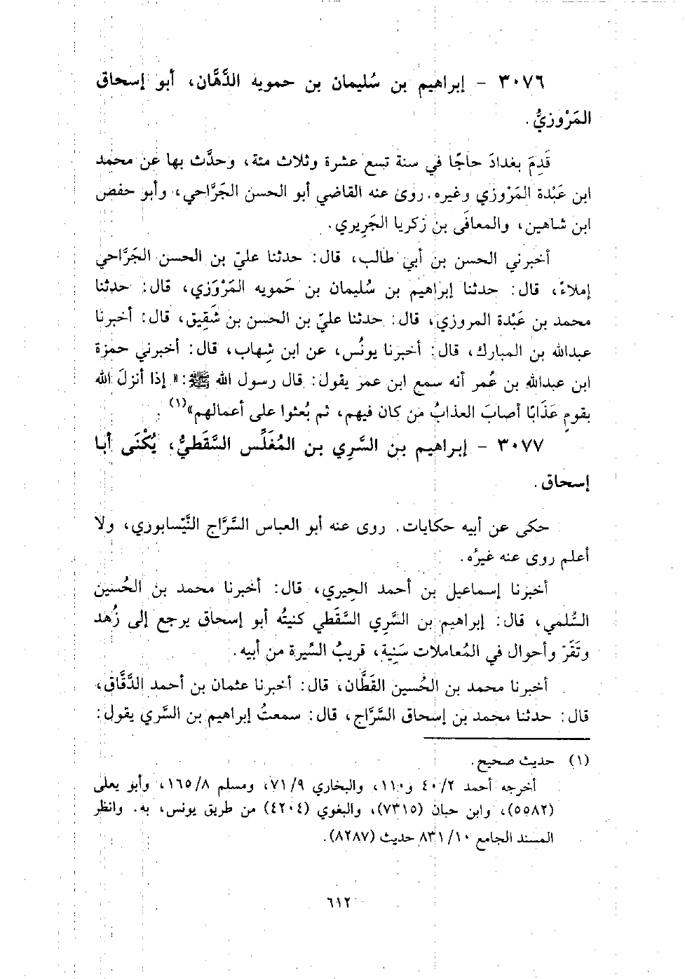 3077 - إِبْرَاهِيم بْن السري بْن المغلس السقطي يكنى أبا إِسْحَاق