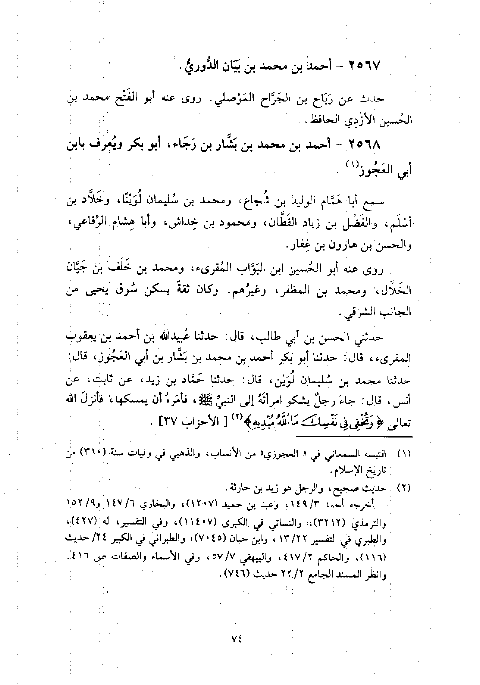 2568 - أَحْمَد بْن مُحَمَّد بْن بشار بْن رجاء أَبُو بَكْر ويعرف بابن أَبِي العجوز