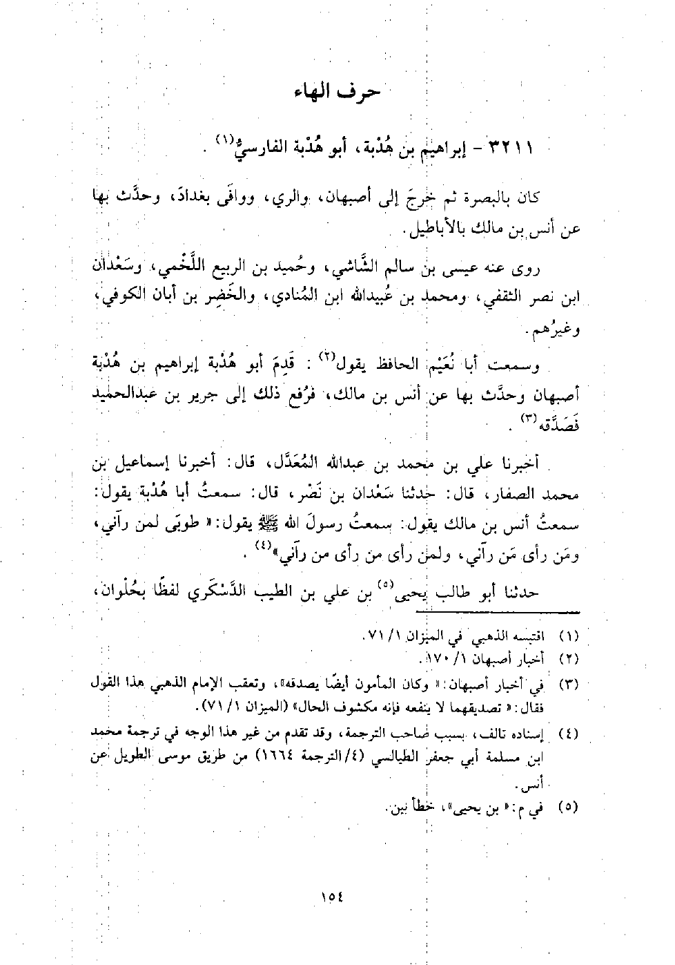 3211 - إبراهيم بن هدبة أبو هدبة الفارسي كان بالبصرة ثم خرج إلى أصبهان، والري، ووافى بغداد، وحدث بها عن أنس بن مالك بالأباطيل.