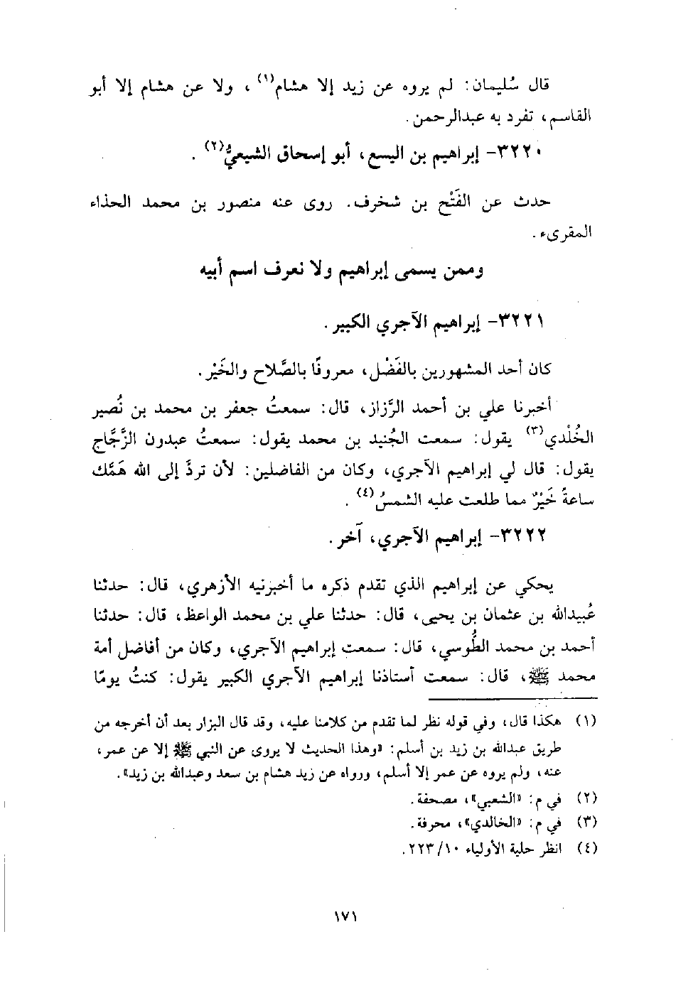3221 - إبراهيم الآجري الكبير كان أحد المشهور بالفضل، معروفا بالصلاح والخير.