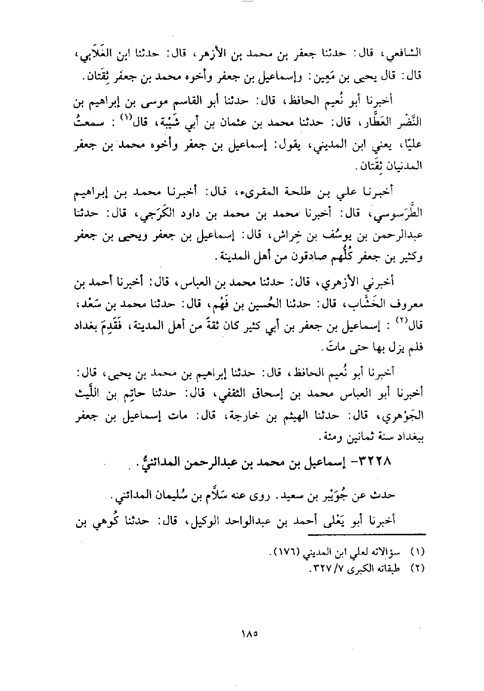 3228 - إسماعيل بن محمد بن عبد الرحمن المدائني حدث عن جويبر بن سعيد، روى عنه سلام بن سليمان المدائني.