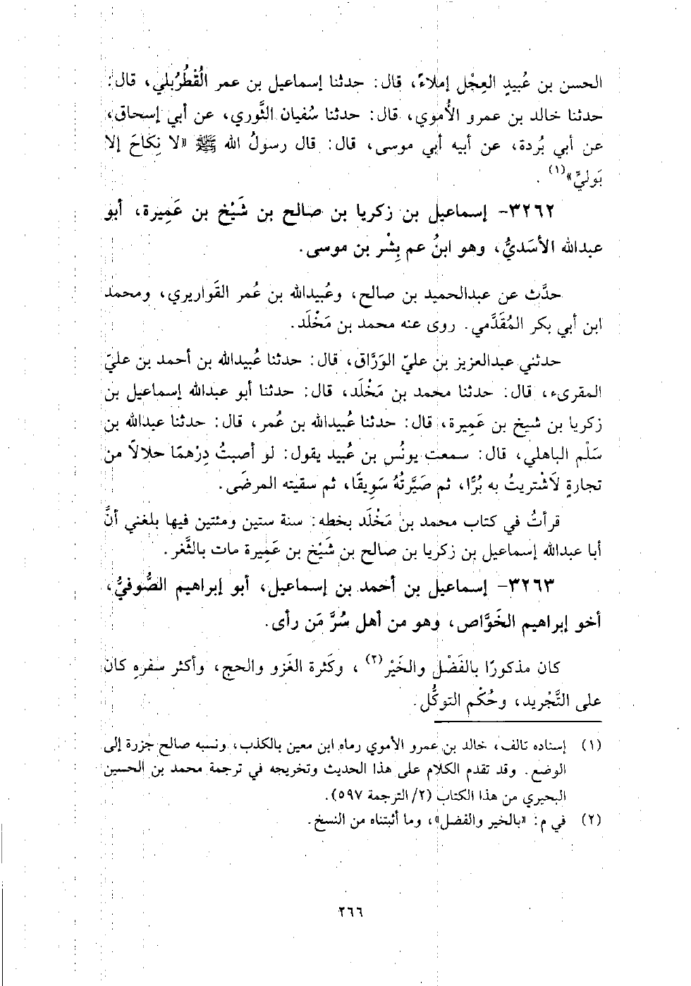 3262 - إسماعيل بن زكريا بن صالح بن شيخ بن عميرة أبو عبد الله الأسدي وهو ابن عم بشر بن موسى