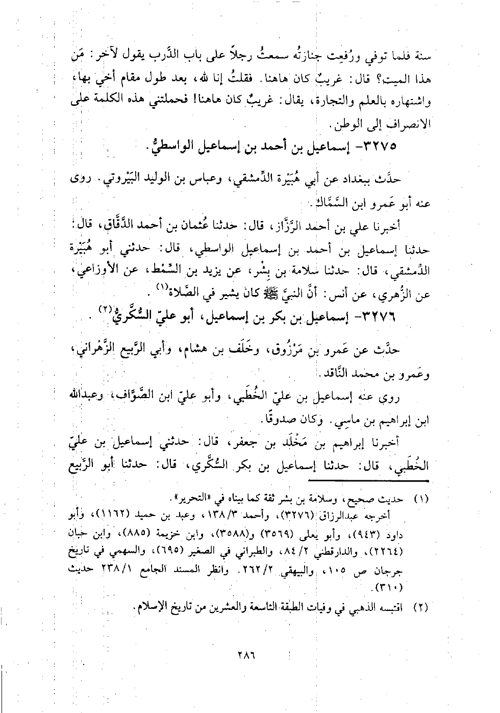 3275 - إسماعيل بن أحمد بن إسماعيل الواسطي حدث ببغداد عن أبي هبيرة الدمشقي، وعباس بن الوليد البيروتي، روى عنه أبو عمرو ابن السماك.