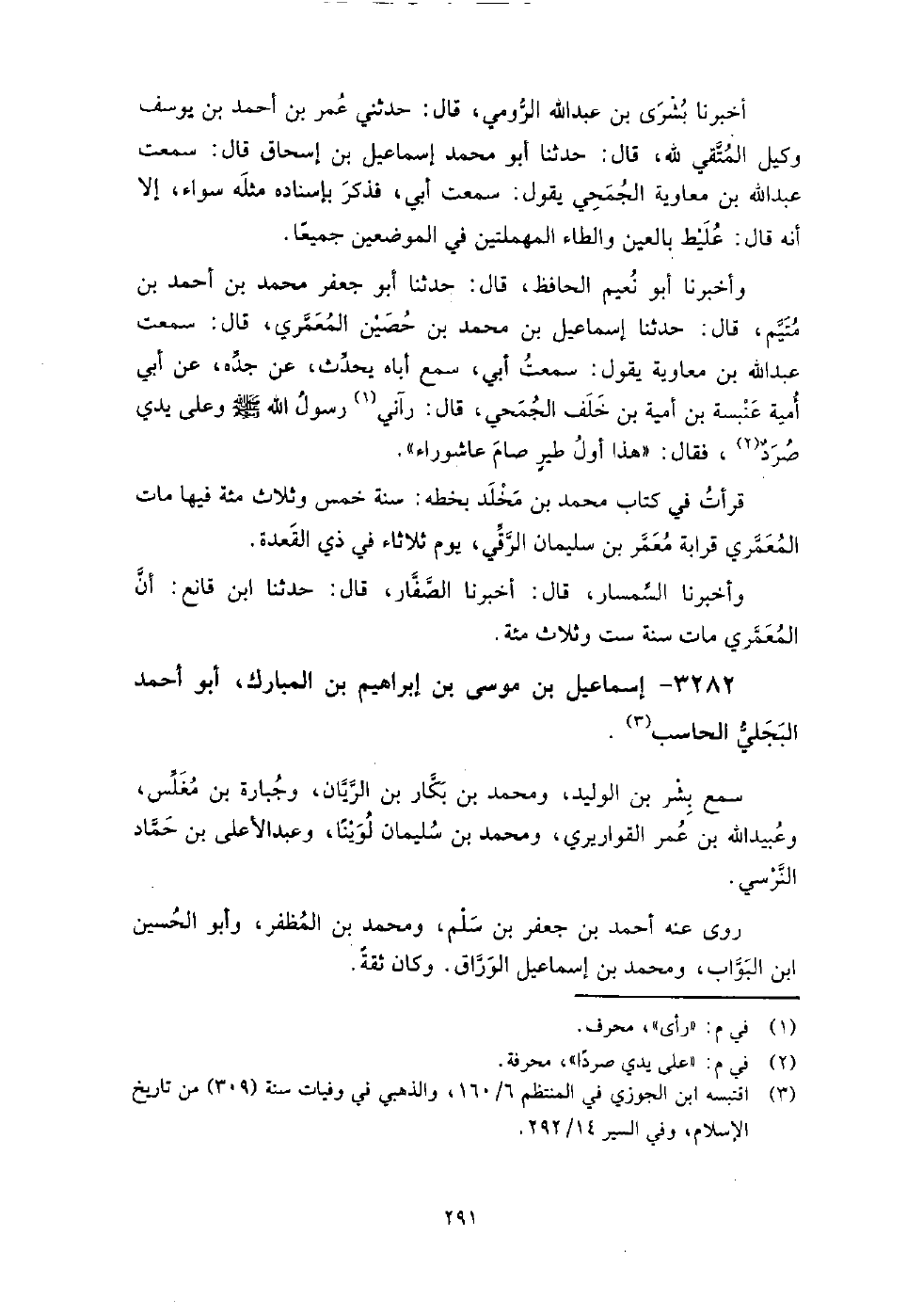 3282 - إسماعيل بن موسى بن إبراهيم بن المبارك أبو أحمد البجلي الحاسب سمع: بشر بن الوليد، ومحمد بن بكار بن الريان، وجبارة بن مغلس، وعبيد الله بن عمر القواريري، ومحمد بن سليمان لوينا، وعبد الأعلى بن حماد النرسي.