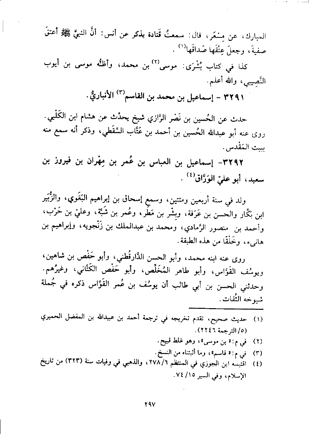 3291 - إسماعيل بن محمد بن القاسم الأنباري حدث عن الحسين بن نصر الرازي شيخ يحدث عن هشام بن الكلبي، روى عنه أبو عبد الله الحسين بن أحمد بن عتاب السقطي، وذكر أنه سمع منه ببيت المقدس.
