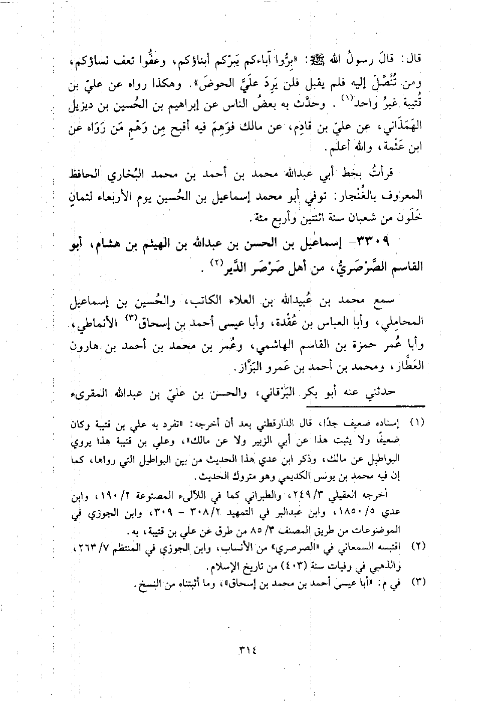 3309 - إسماعيل بن الحسن بن عبد الله بن الهيثم بن هشام أبو القاسم الصرصري من أهل صرصر الدير