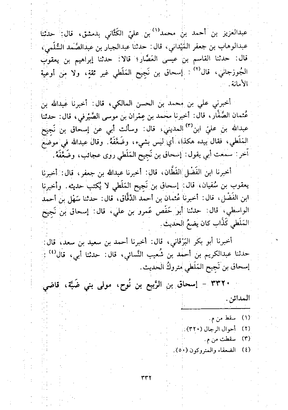 3320 - إسحاق بن الربيع بن نوح مولى بني ضبة قاضي المدائن