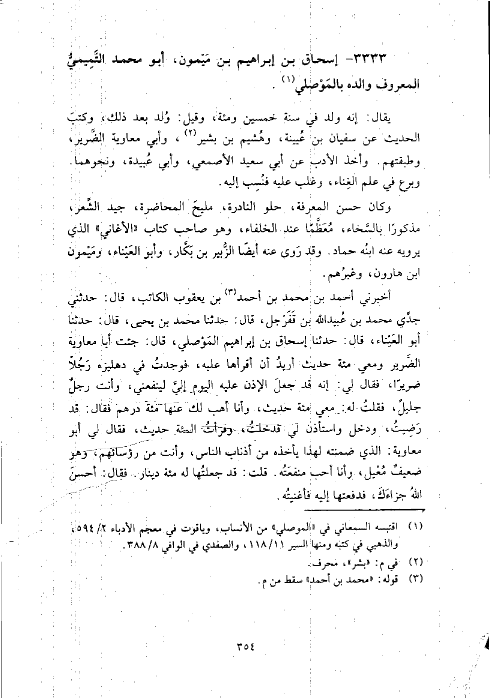 3333 - إسحاق بن إبراهيم بن ميمون أبو محمد التميمي المعروف والده بالموصلي