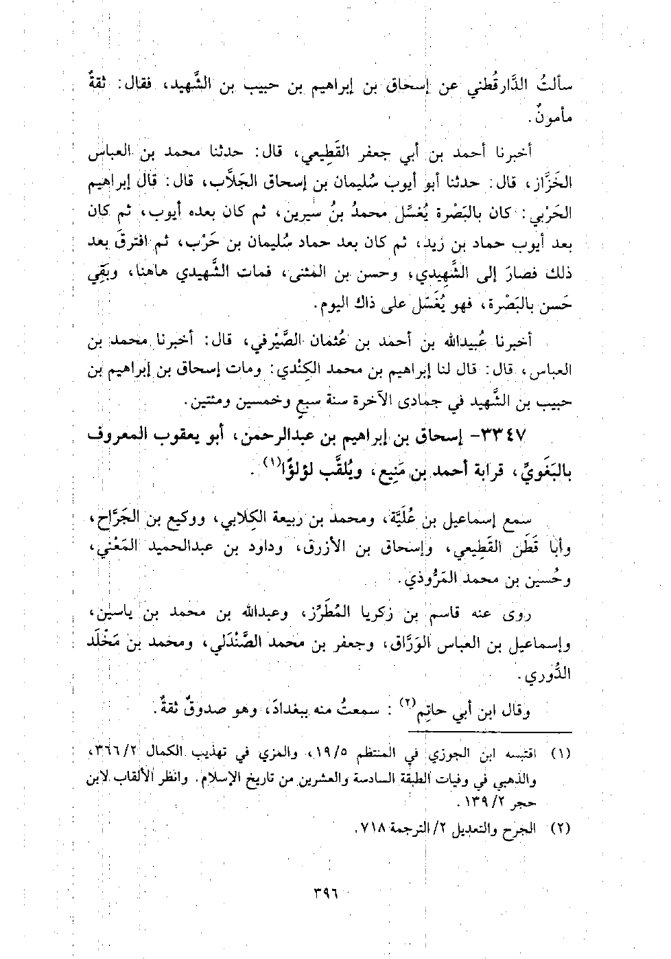 3347 - إسحاق بن إبراهيم بن عبد الرحمن أبو يعقوب المعروف بالبغوي قرابة أحمد بن منيع، ويلقب لؤلؤا