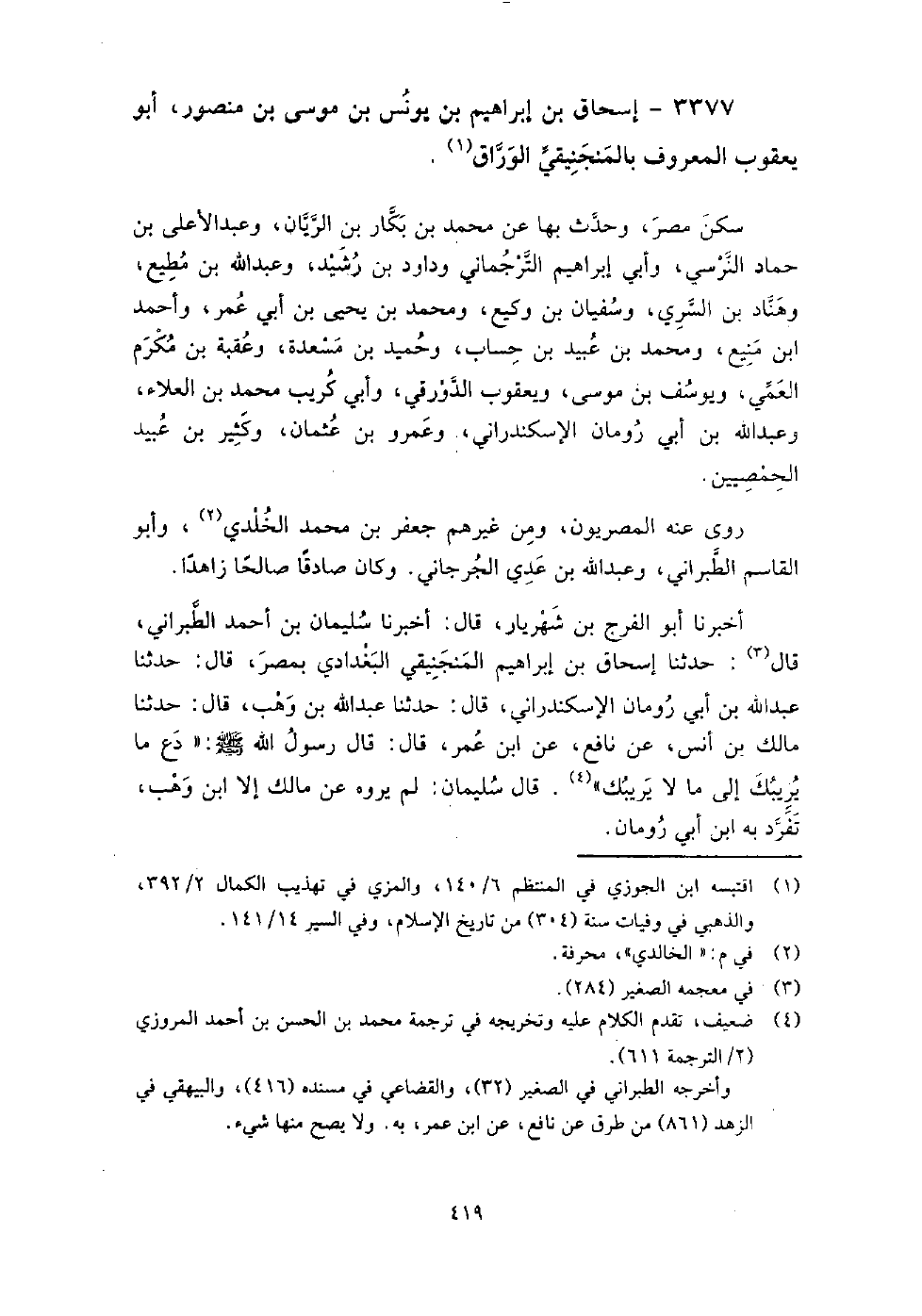 3377 - إسحاق بن إبراهيم بن يونس بن موسى بن منصور أبو يعقوب المعروف بالمنجنيقي الوراق