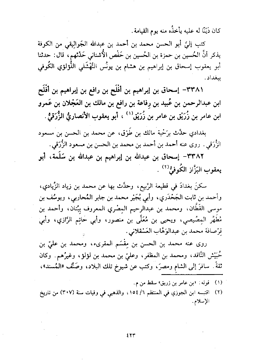3382 - إسحاق بن عبد الله بن إبراهيم بن عبد الله بن سلمة أبو يعقوب البزاز الكوفي