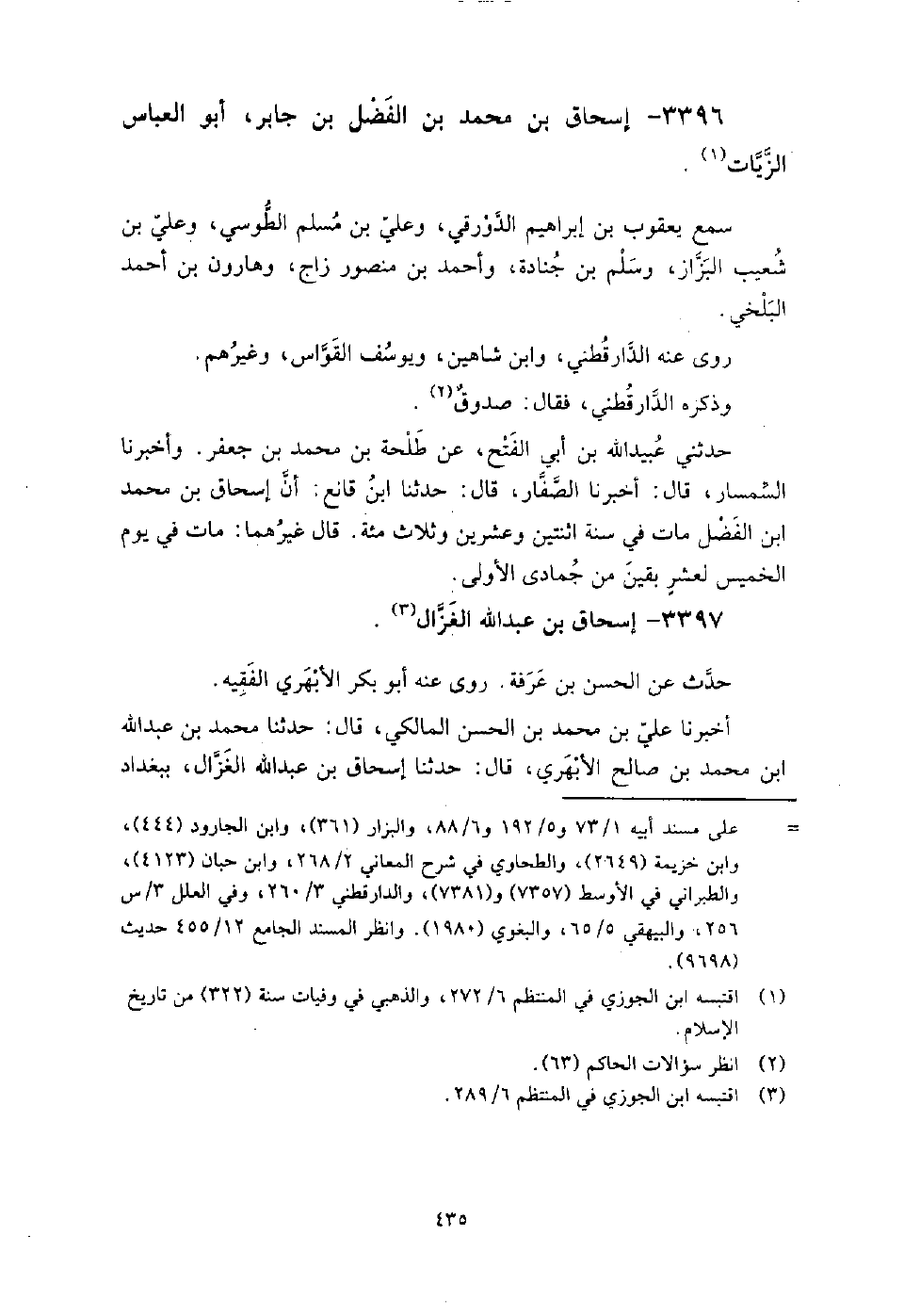 3397 - إسحاق بن عبد الله الغزال حدث عن الحسن بن عرفة، روى عنه أبو بكر الأبهري الفقيه