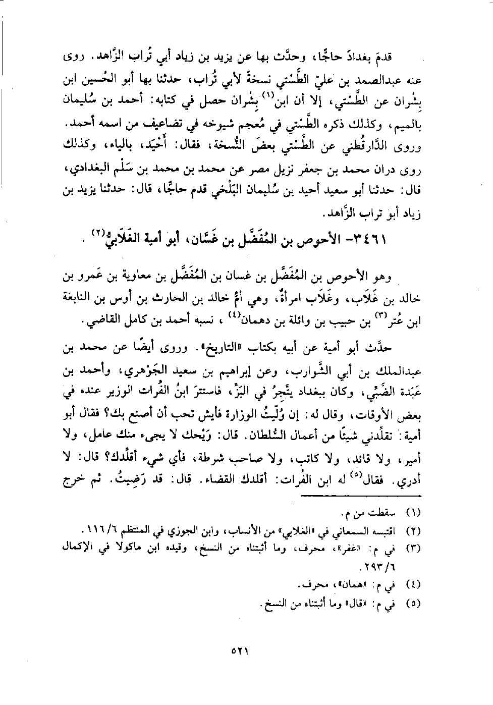 3461 - الأحوص بن المفضل بن غسان أبو أمية الغلابي وهو الأحوص بن المفضل بن غسان بن المفضل بن معاوية بن عمرو بن خالد بن غلاب، وغلاب امرأة، وهي أم خالد بن الحارث بن أوس بن النابغة بن عتر بن حبيب بن وائلة بن دهمان، نسبه أحمد بن كامل القاضي.