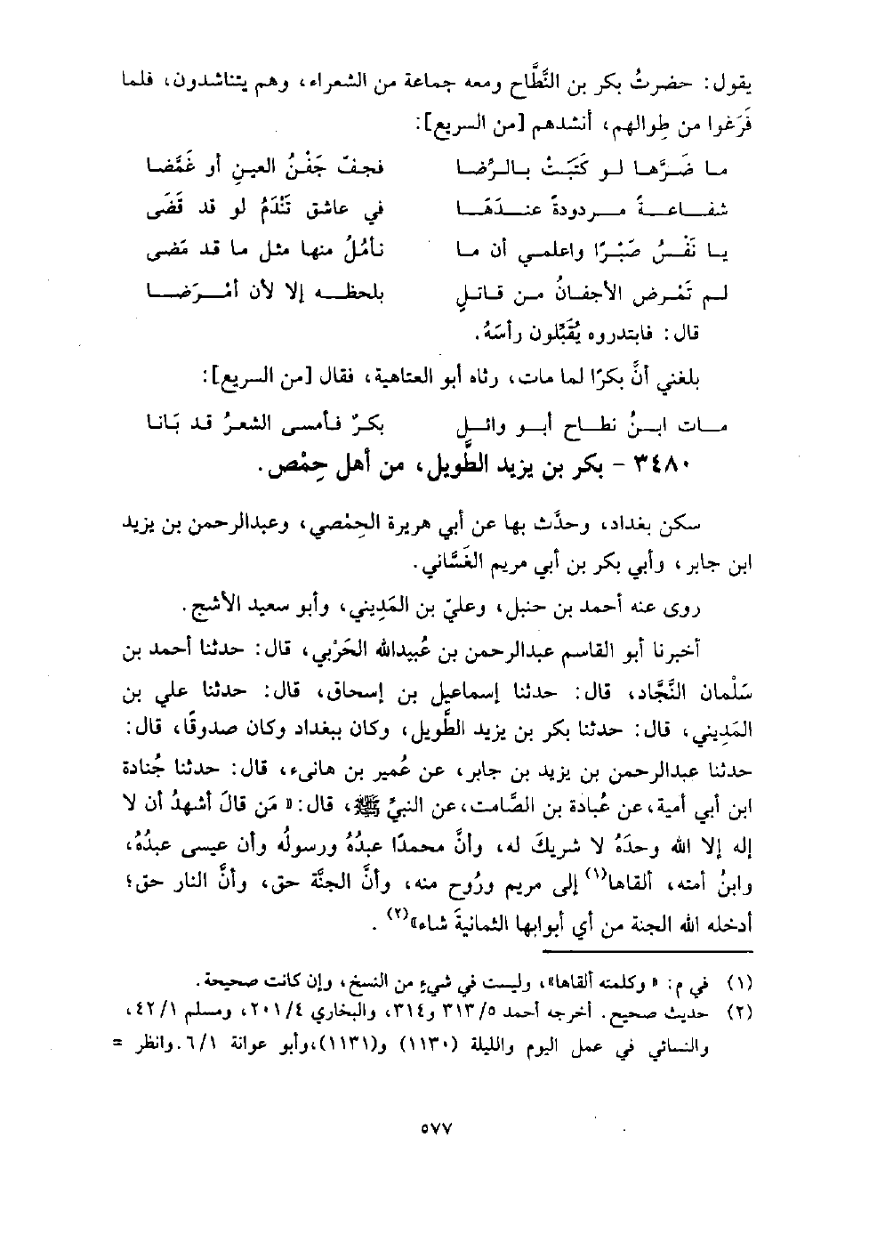 3480 - بكر بن يزيد الطويل من أهل حمص سكن بغداد، وحدث بها عن: أبي هريرة الحمصي، وعبد الرحمن بن يزيد بن جابر، وأبي بكر بن أبي مريم الغساني، روى عنه: أحمد بن حنبل، وعلي ابن المديني، وأبو سعيد الأشج
