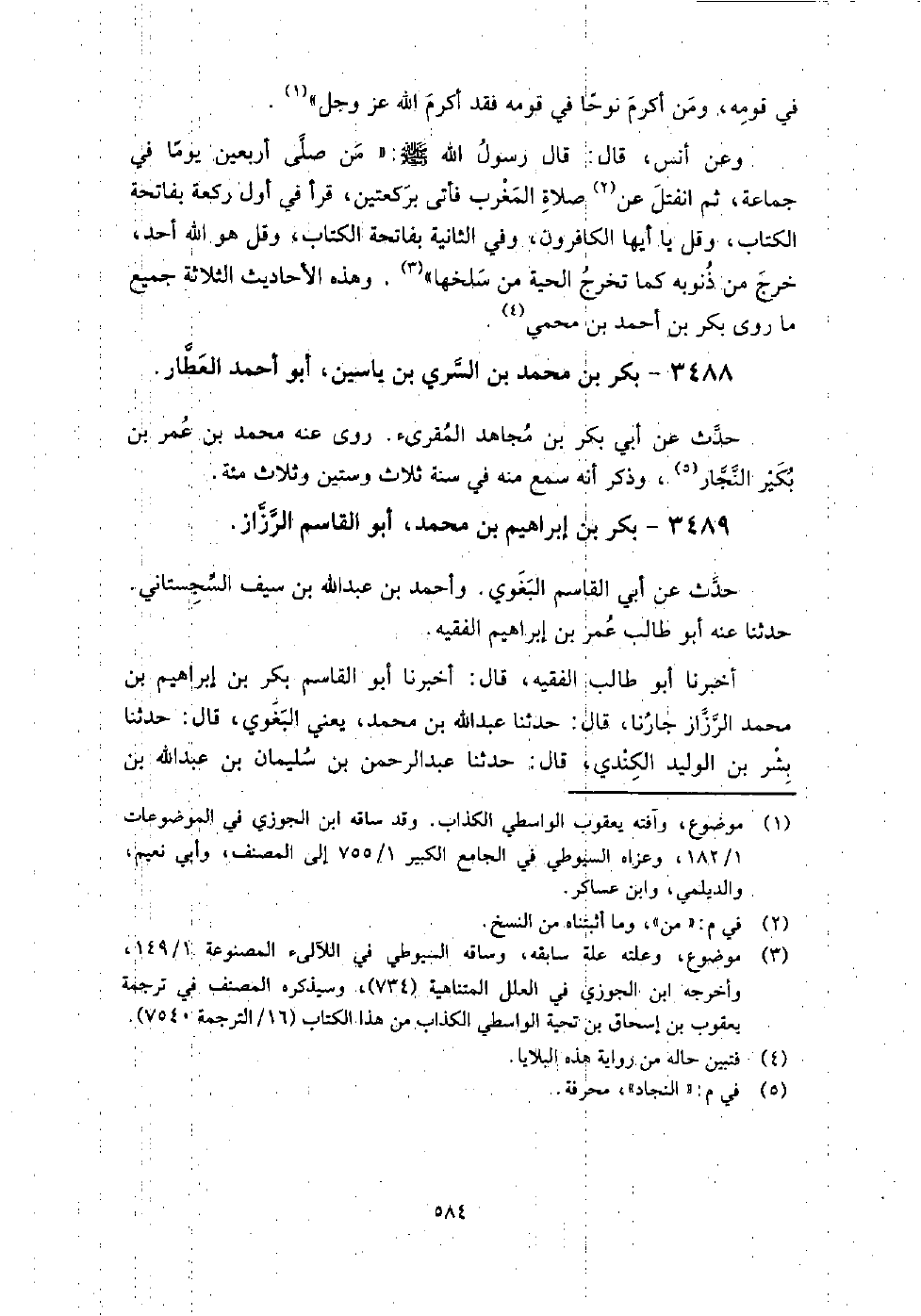 3489 - بكر بن إبراهيم بن محمد أبو القاسم الرزاز حدث عن أبي القاسم البغوي، وأحمد بن عبد الله بن سيف السجستاني، وأحمد بن عبد الله بن سيف السجستاني، حدثنا عنه أبو طالب عمر بن إبراهيم الفقيه