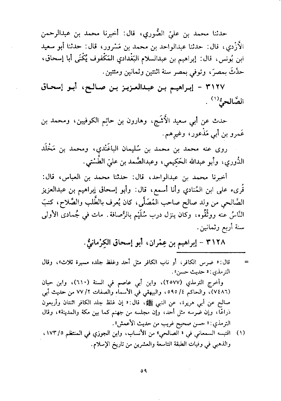 3127 - إبراهيم بن عبد العزيز بن صالح أبو إسحاق الصالحي حدث ن أبي سعيد الأشج، وهارون بن حاتم الكوفيين، ومحمد بن عمرو بن أبي مذعور، وغيرهم.