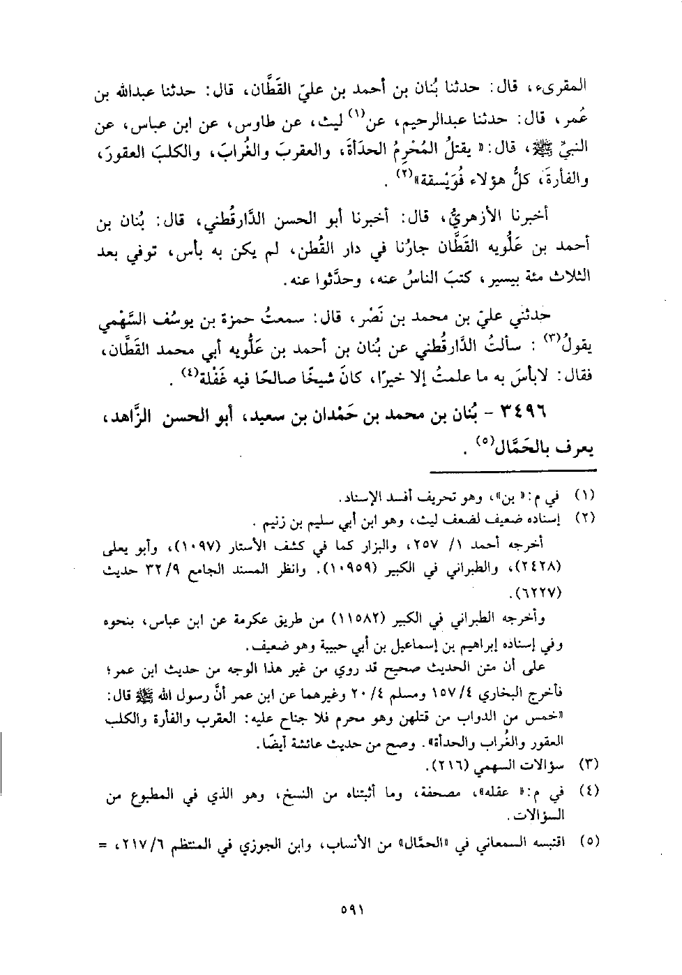3496 - بنان بن محمد بن حمدان بن سعيد أبو الحسن الزاهد يعرف بالحمال