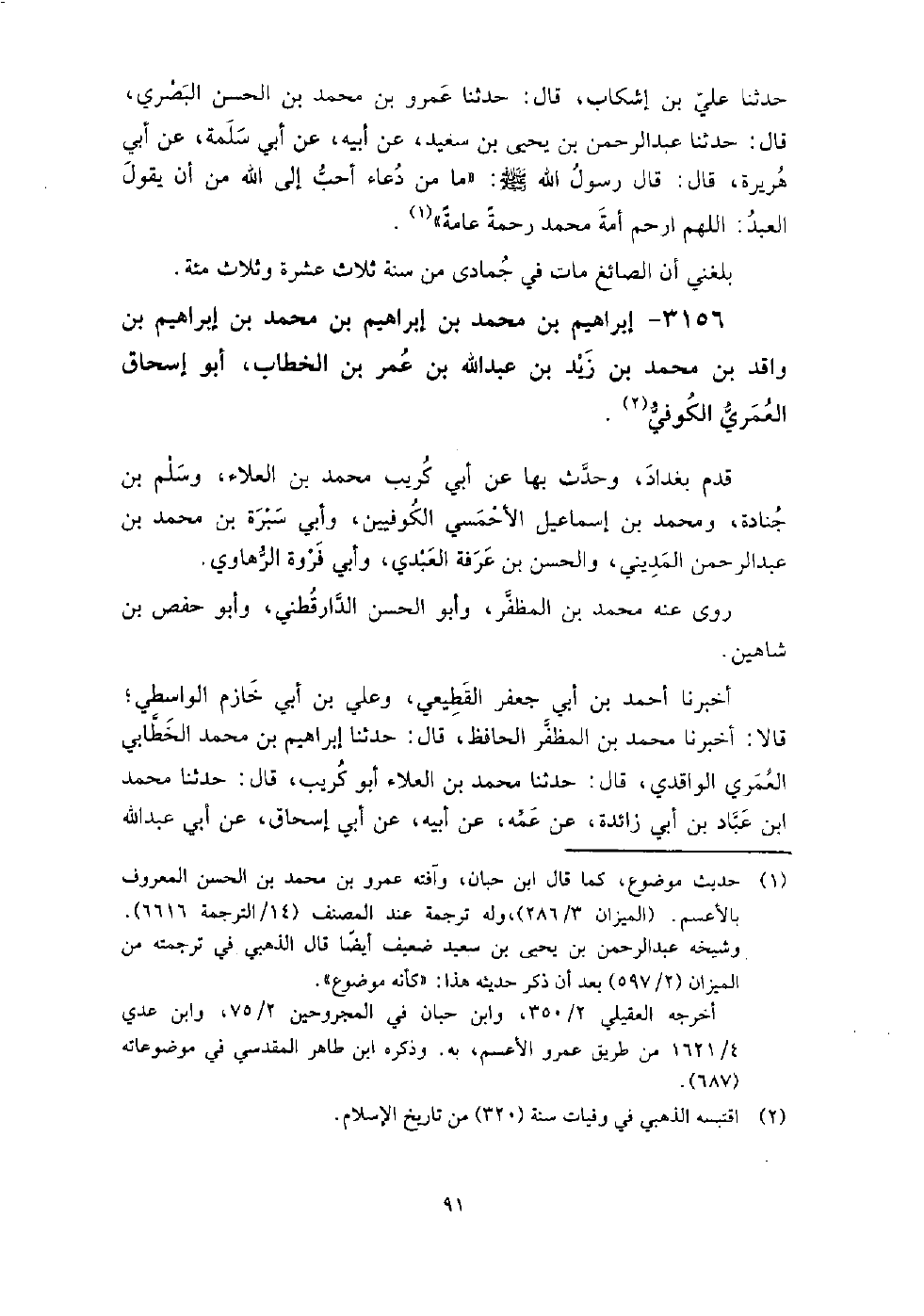 3156 - إبراهيم بن محمد بن إبراهيم بن محمد بن إبراهيم بن واقد بن محمد بن زيد بن عبد الله بن عمر بن الخطاب أبو إسحاق العمرى الكوفي