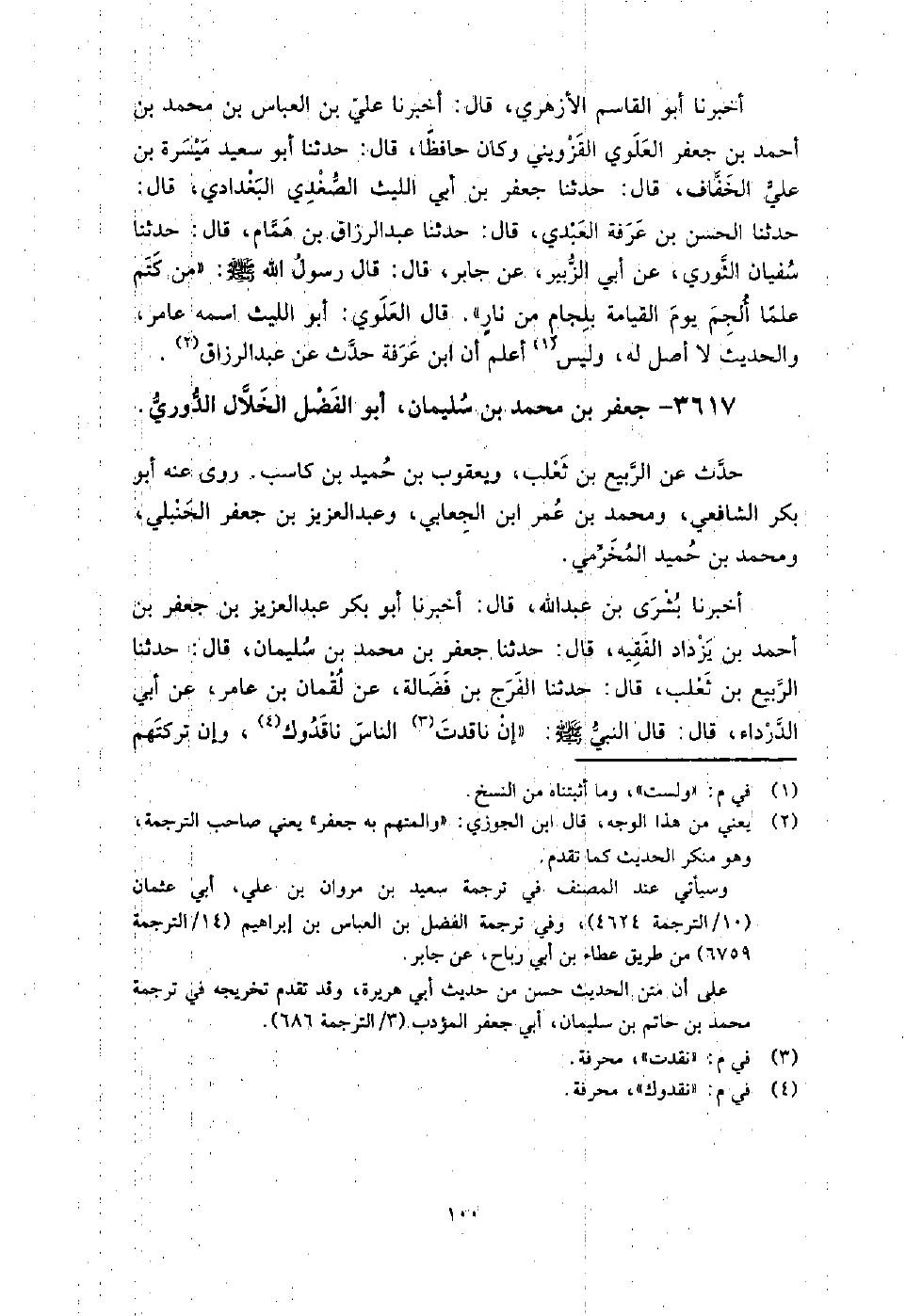 3617 - جَعْفَر بن مُحَمَّدِ بْنِ سُلَيْمَان، أَبُو الفضل الخلال الدوري حدث عَنِ الربيع بن ثعلب، ويعقوب بن حميد بن كاسب.