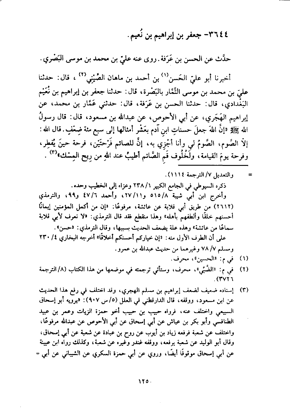 3644 - جَعْفَر بن إِبْرَاهِيم بن نعيم حدث عَنِ الْحَسَن بن عرفة.