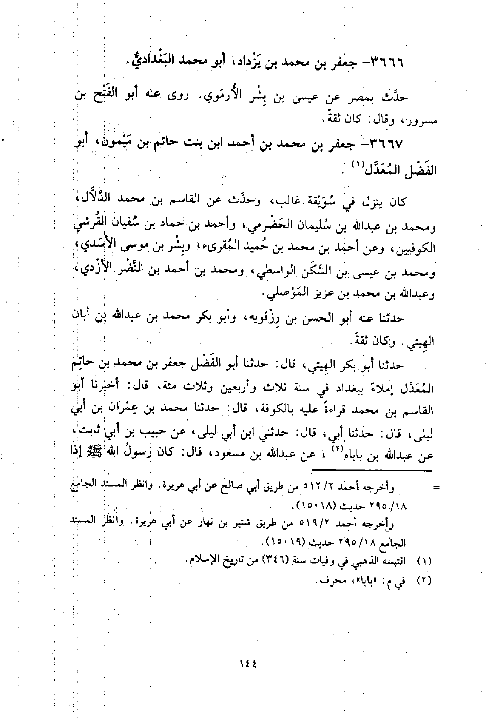 3666 - جَعْفَر بن مُحَمَّدِ بْنِ يزداد أَبُو مُحَمَّد الْبَغْدَادِيّ حدث بمصر عَنْ عِيسَى بن بشر الأرموي.