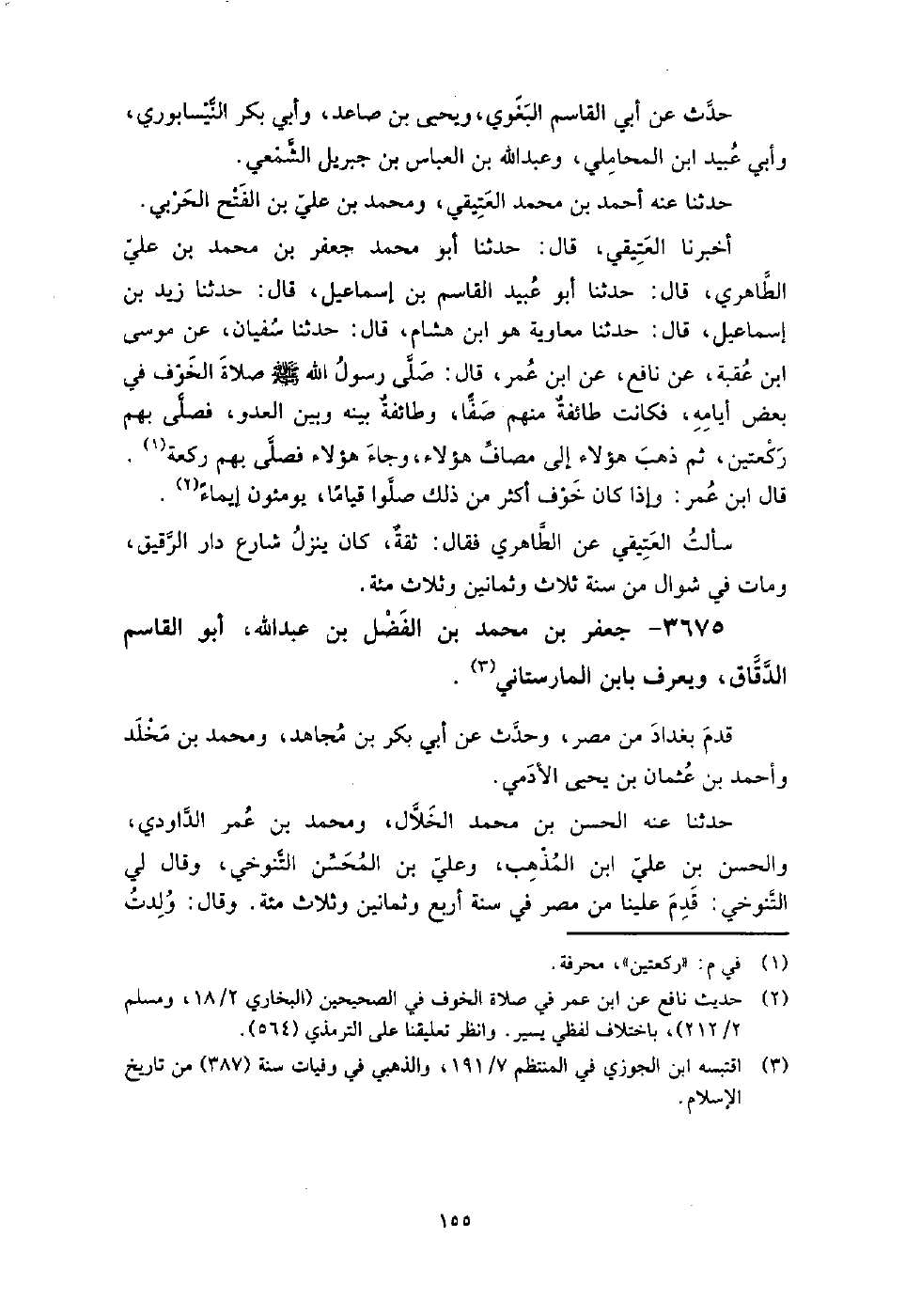 3675 - جَعْفَر بن مُحَمَّدِ بْنِ الفضل بن عَبْد اللَّهِ أَبُو الْقَاسِمِ الدَّقَّاق ويعرف بابن المارستاني قدم بغداد من مصر، وحدث عَنْ أَبِي بكر بن مجاهد، ومحمد بن مخلد، وأحمد بن عُثْمَان بن يَحْيَى الأدمي.