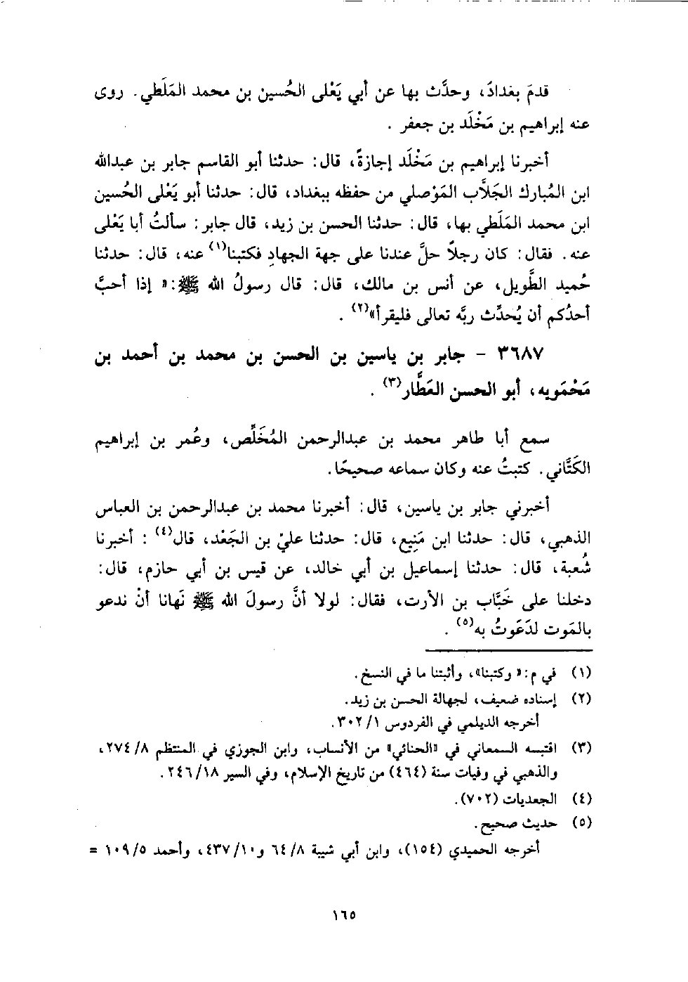 3687 - جابر بن ياسين بن الْحَسَن بن مُحَمَّدِ بْنِ أَحْمَدَ بْنِ محمويه أَبُو الْحَسَن العطار سمع أبا طاهر مُحَمَّد بن عَبْد الرَّحْمَنِ المخلص، وعمر بن إِبْرَاهِيم الكتاني.
