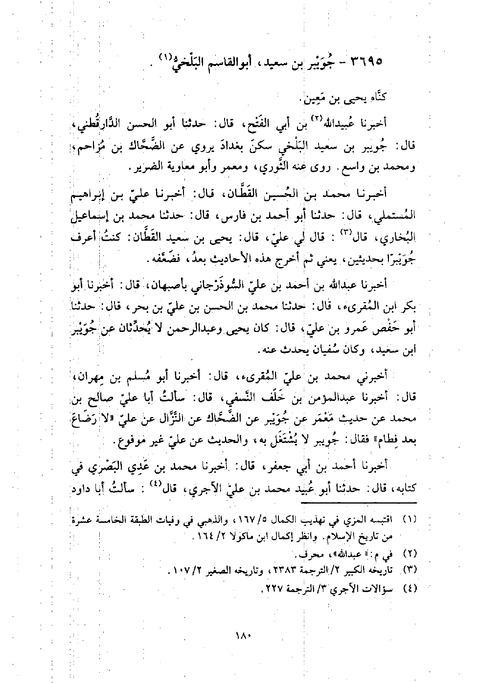3695 - جويبر بن سعيد أَبُو الْقَاسِمِ البلخي كناه يَحْيَى بن معين.