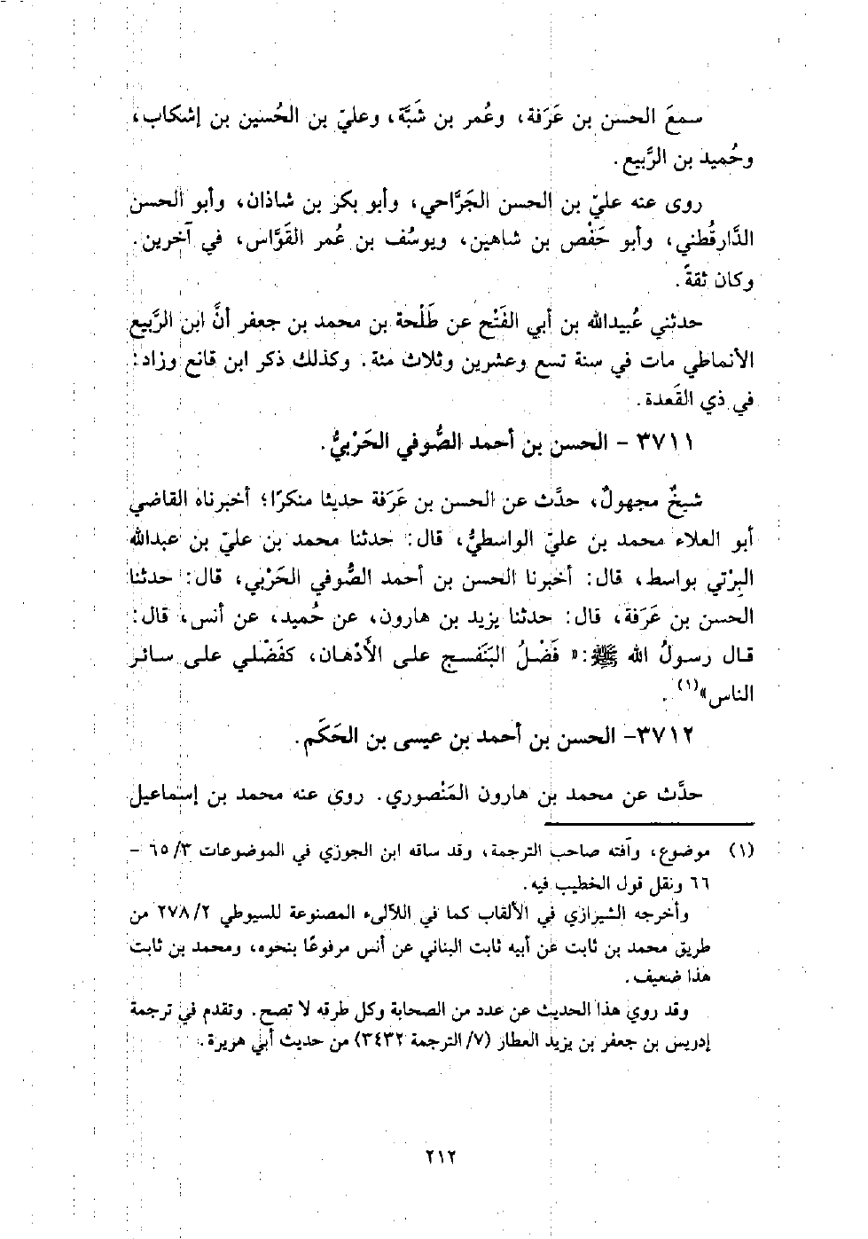 3711 - الْحَسَن بن أَحْمَد الصوفي الحربي شيخ مجهول، حدث عَنِ الْحَسَن بن عرفة حديثا منكرا.