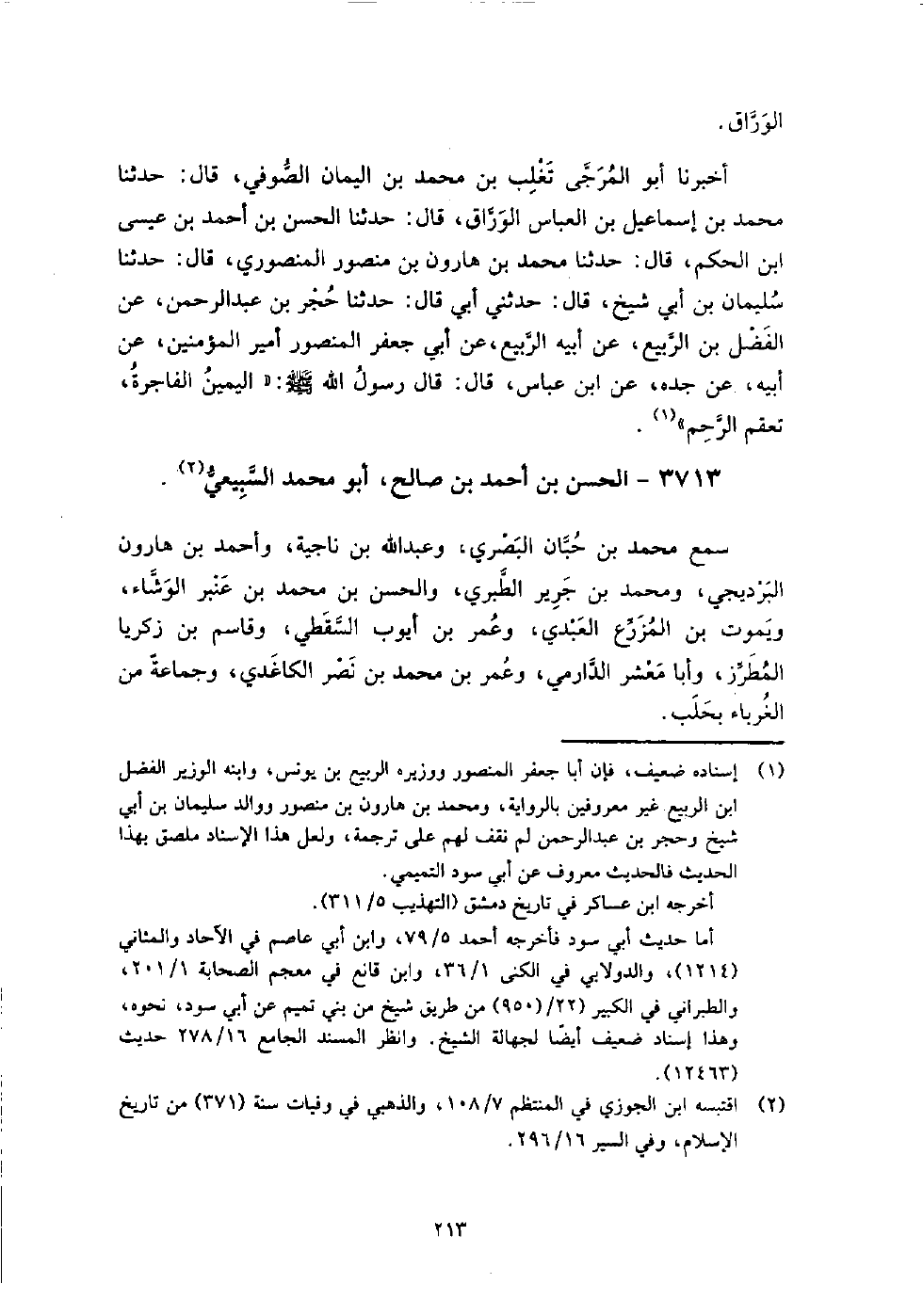 3713 - الْحَسَن بن أَحْمَدَ بْنِ صالح أَبُو مُحَمَّد السبيعي سمع مُحَمَّد بن حبان البصري، وعَبْد اللَّهِ بْن ناجية، وأحمد بن هارون البرديجي، ومحمد بن جرير الطبري، والحسن بن مُحَمَّدِ بْنِ عنبر الوشاء، ويموت بن المزرع العبدي، وعمر بن أيوب السقطي، وقاسم بن زكريا المطرز، وأبا معشر الدارمي، وعمر بن مُحَمَّدِ بْنِ نصر الكاغدي، وجماعة من الغرباء بحلب.