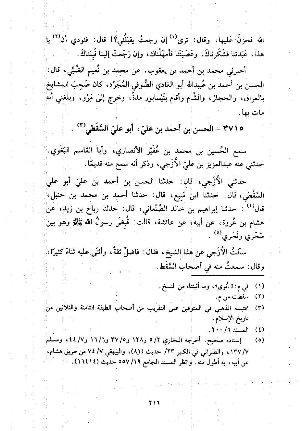 3715 - الْحَسَن بن أَحْمَدَ بْنِ عَلِيّ أَبُو عَلِيّ السقطي سمع الْحُسَيْن بن مُحَمَّدِ بْنِ عفير الأنصاري، وأبا القاسم البغوي.