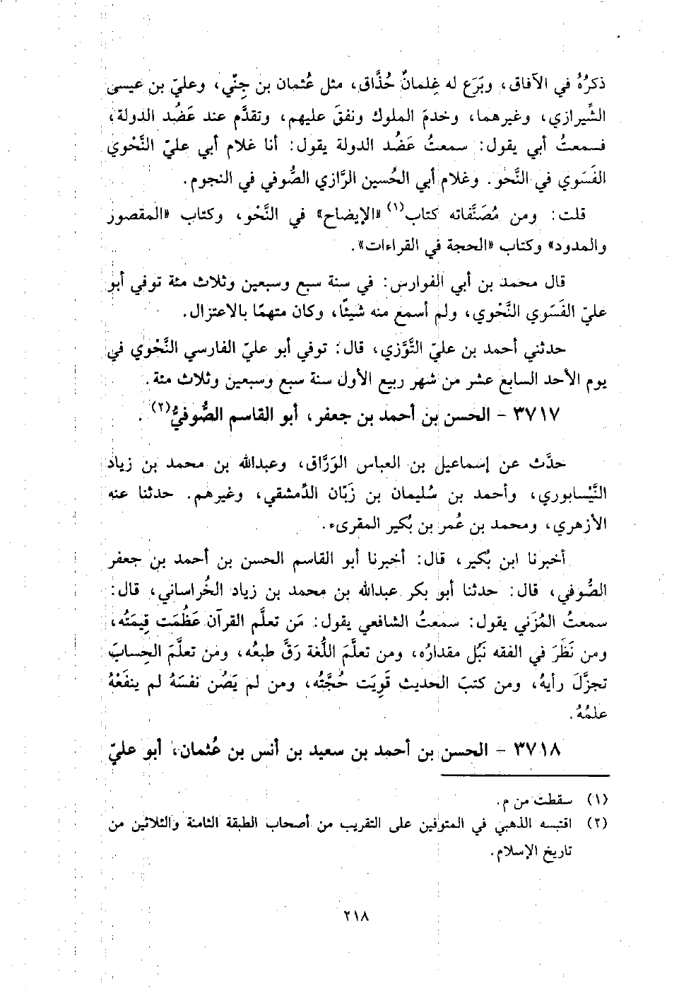 3717 - الْحَسَن بن أَحْمَدَ بْنِ جَعْفَر أَبُو الْقَاسِمِ الصوفي حدث عَنْ إِسْمَاعِيل بن الْعَبَّاس الْوَرَّاق، وعَبْد اللَّهِ بْن مُحَمَّدِ بْنِ زياد النيسابوري، وأحمد بن سُلَيْمَان بن زبان الدمشقي، وغيرهم.