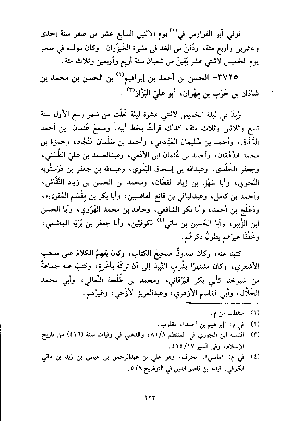 3725 - الْحَسَن بْن أَحْمَد بْن إِبْرَاهِيم بْن الْحَسَن بن مُحَمَّد بن شاذان بْن حرب بْن مهران أَبُو عَلِيّ البزاز