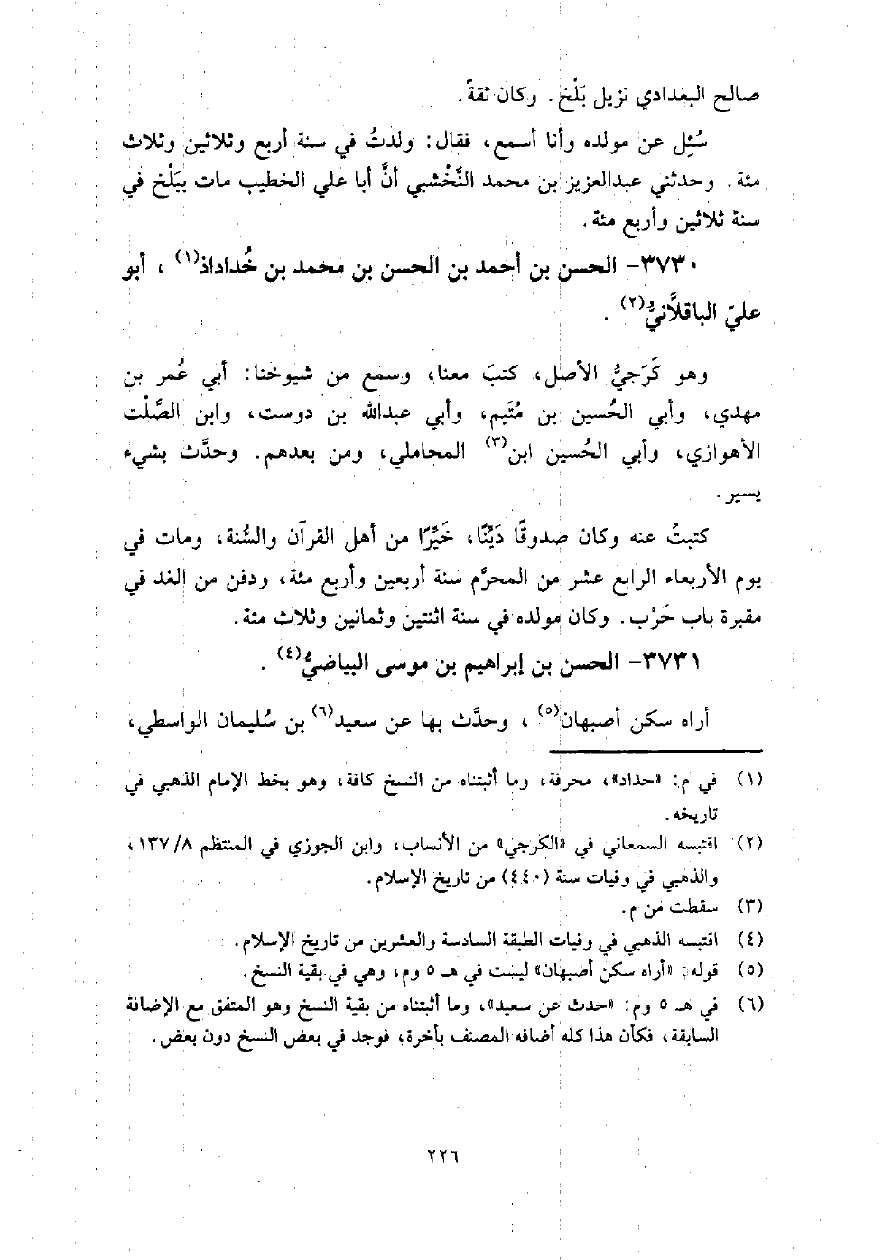 3731 - الْحَسَن بن إِبْرَاهِيم بن مُوسَى البياضي أراه سكن أصبهان، وحدث بها عَنْ سعيد بن سُلَيْمَان الواسطي، وأبي النضر هاشم بن القاسم، وأسود بن عامر شاذان، وعفان بن مسلم، وداود بن مهران الدباغ.