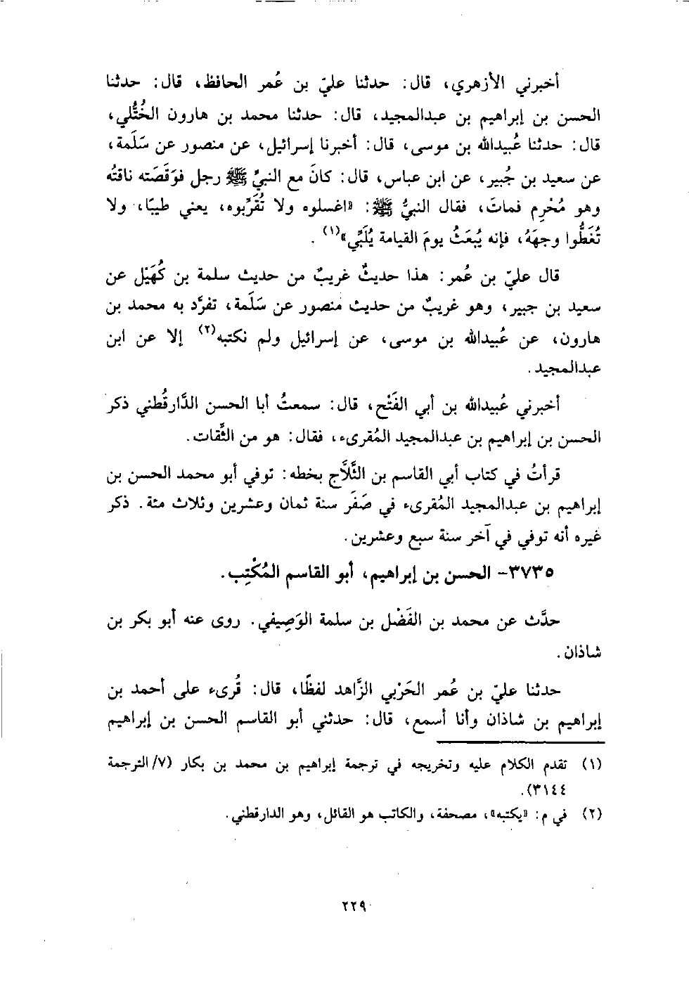 3735 - الْحَسَن بن إِبْرَاهِيم أَبُو الْقَاسِمِ المكتب حدث عَنْ مُحَمَّد بن الفضل بن سَلَمَة الوصيفي.
