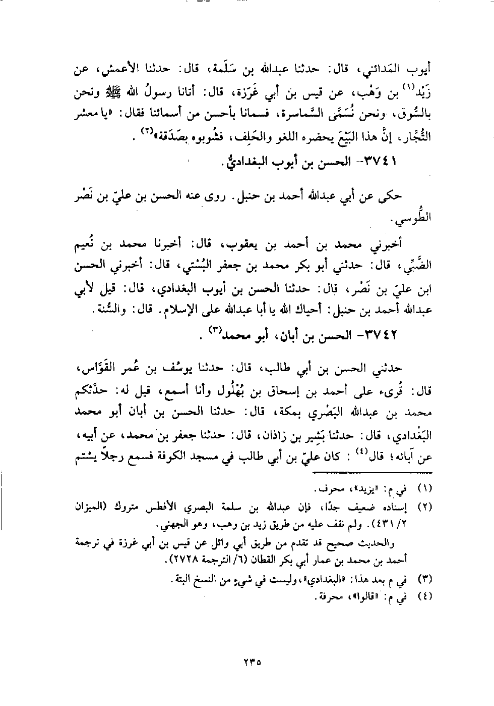 3741 - الْحَسَن بن أَيُّوبَ الْبَغْدَادِيّ حكى عَنْ أَبِي عَبْد اللَّهِ أَحْمَد بن حنبل.