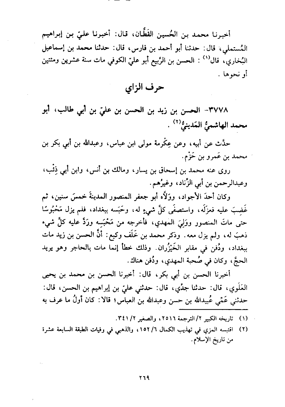 3778 - الْحَسَن بن زيد بن الْحَسَن بن عَلِيّ بن أَبِي طالب أَبُو مُحَمَّد الهاشمي المديني حدث عَنْ أَبِيه، وعن عكرمة مولى ابن عباس، وعَبْد اللَّهِ بْن أَبِي بكر بن مُحَمَّدِ بْنِ عمرو بن حزم.