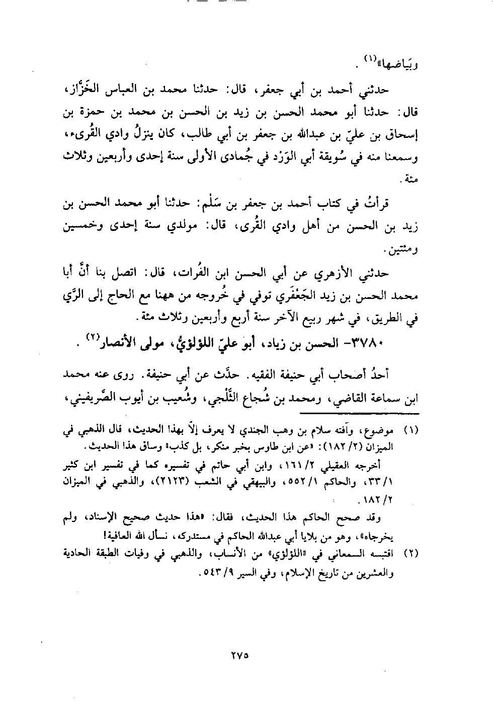 3780 - الْحَسَن بن زياد أَبُو عَلِيّ اللؤلؤي مولى الأنصار أحد أصحاب أَبِي حنيفة الفقيه.