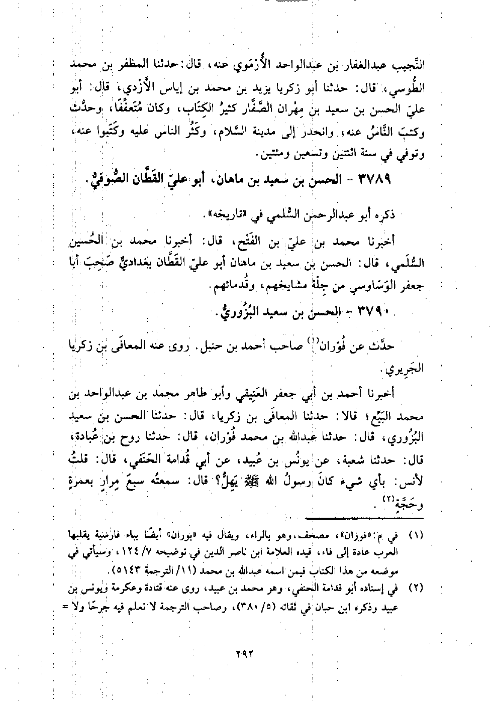 3790 - الْحَسَن بن سعيد البزوري حدث عَنْ فوران صاحب أَحْمَد بن حنبل.