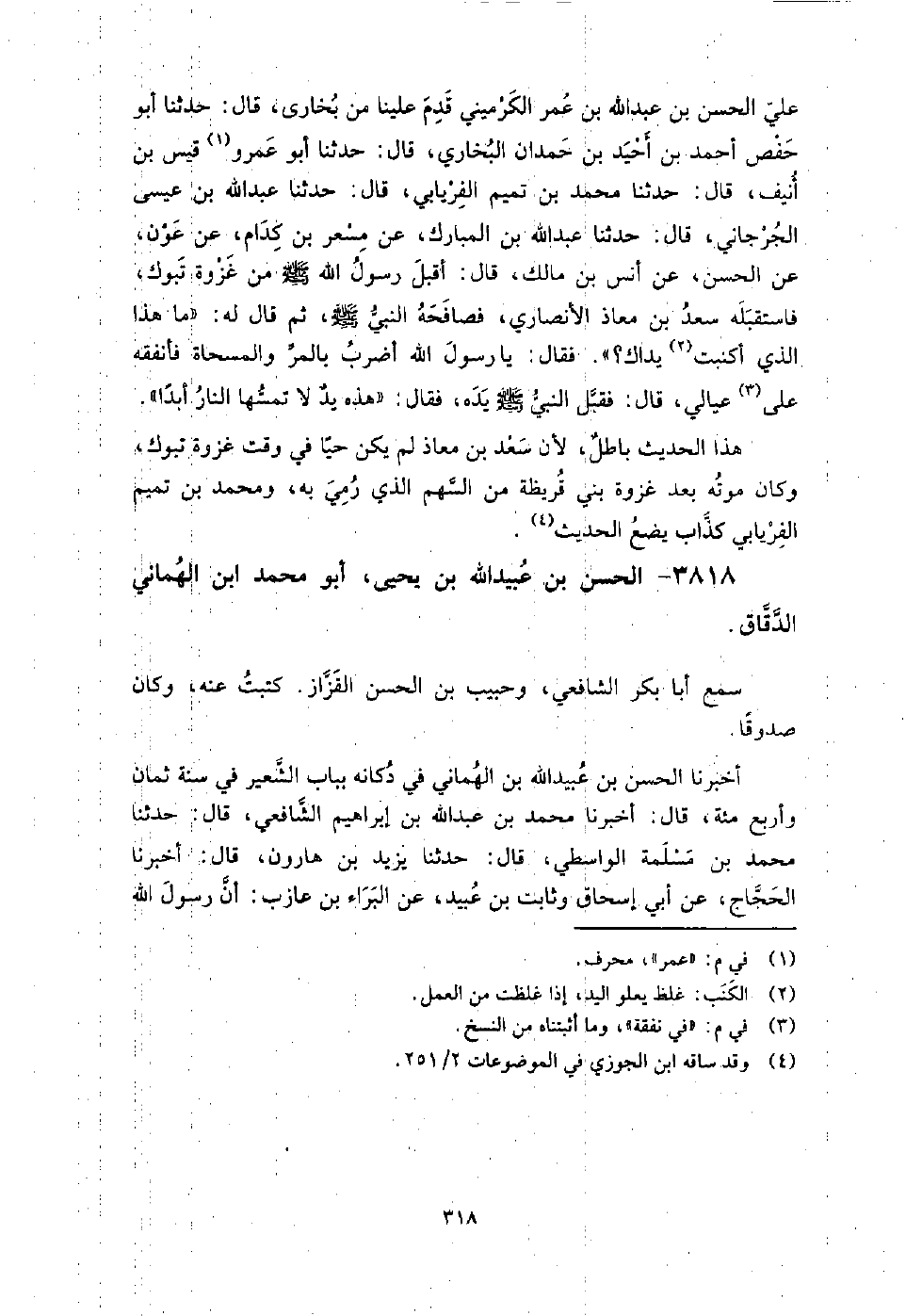 3818 - الْحَسَن بن عُبَيْد اللَّهِ بن يَحْيَى أَبُو مُحَمَّد بن الهماني الدَّقَّاق سمع أبا بكر الشافعي، وحبيب بن الْحَسَن القزاز.