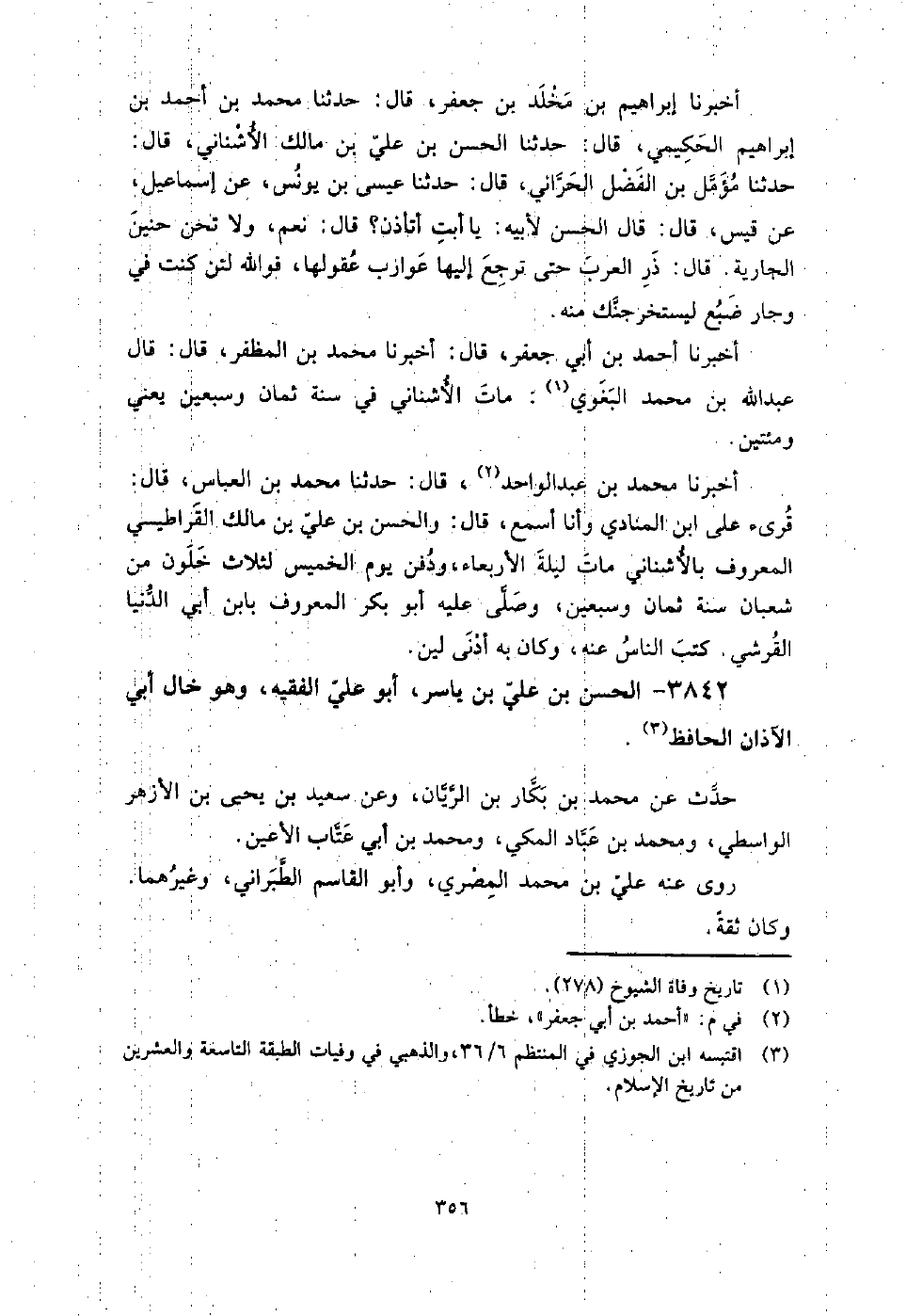 3842 - الْحَسَن بن عَلِيّ بن ياسر أَبُو عَلِيّ الفقيه وهو خال أَبِي الآذان الْحَافِظ حدث عَنْ مُحَمَّد بن بكار بن الريان، وعن سعيد بن يَحْيَى بن الأزهر الواسطي، ومحمد بن عباد المكي، ومحمد بن أَبِي عتاب الأعين.