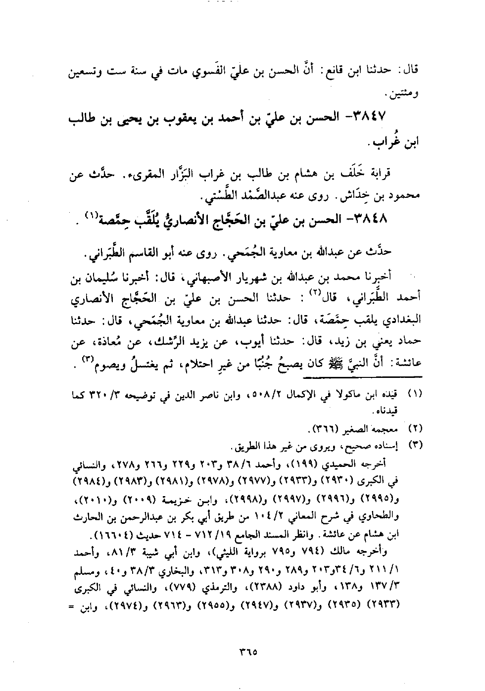 3848 - الْحَسَن بن عَلِيّ الحجاج الأنصاري يلقب حمصة حدث عَنْ عَبْدِ اللَّهِ بْنِ معاوية الجمحي.
