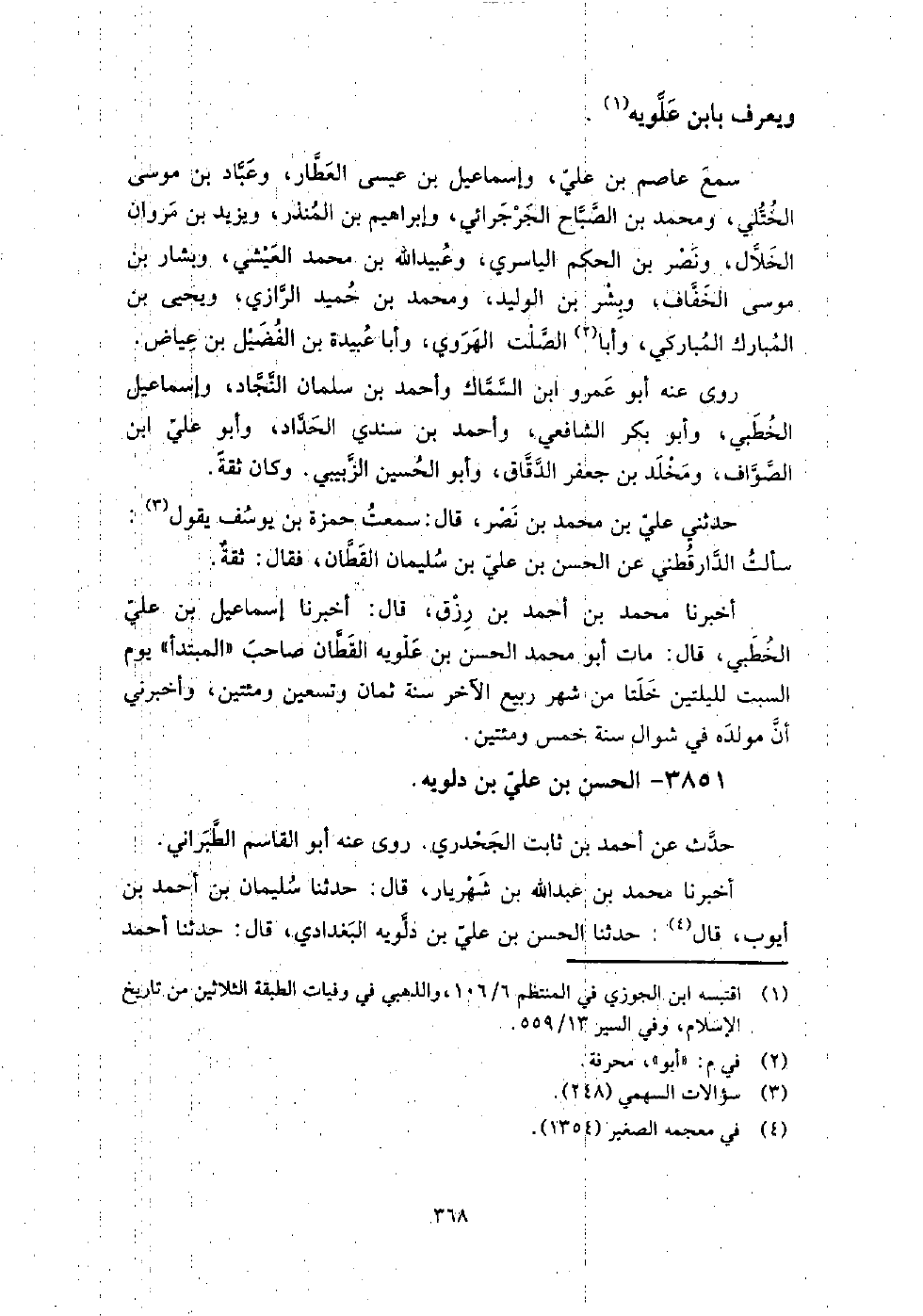 3851 - الْحَسَن بن عَلِيّ بن دلويه حدث عَنْ أَحْمَد بن ثابت الجحدري.