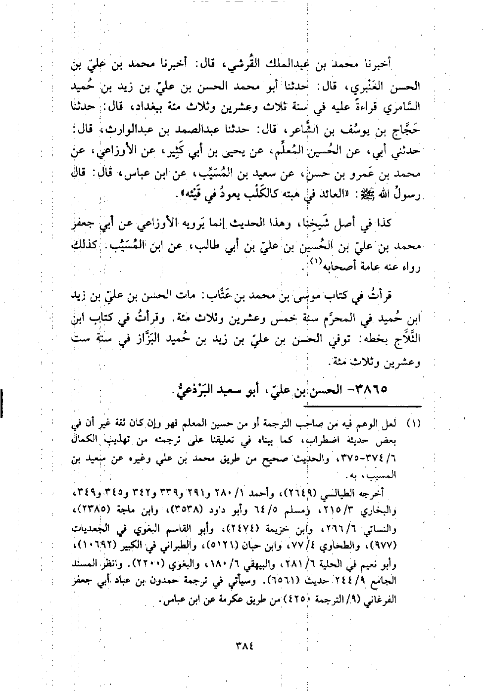 3865 - الْحَسَن بن عَلِيّ أَبُو سعيد البرذعي قدم بغداد، وحدث بها عَنْ مُحَمَّد بن أَيُّوبَ.